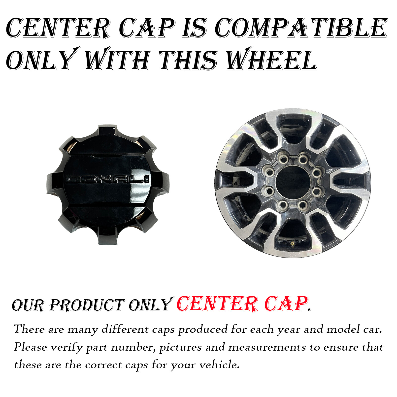 Please VERIFY THE PART NUMBER on your current center cap or hubcap before purchasing. Some center caps/hubcaps look the same but are different sizes. Our primary purpose is for both parties (buyer and seller) to save money and time on returns. Your satisfaction is essential to us. Brand GMC Manufacturer Part Number 84307952 Placement on Vehicle Front,Rear,Left,Right Size 7"              For GMC Sierra Denali 2500 3500 OEM Center Cap 2020-2023 84307952 560-05949 Please **VERIFY THE PART NUMBER** on your current center cap or hubcap before purchasing. Some center caps/hubcaps look the same but are different sizes. Our primary purpose is for both parties (buyer and seller) to save money and time on returns. Your satisfaction is essential to us. **Item Specifics**Brand :GMCManufacturer Part Number :84307952Placement on Vehicle :Front,Rear,Left,RightSize :7" Description Used, will have light scratches but in good working condition.Picture of rim for reference of likely wheel the center cap fits on.Please make sure these are the parts that will fit your wheels, **match the part numbers on this listing to the back of your cap**. We try to provide you with as much information as possible, please ask us if you have any questions or concerns! If you do not know the information of your wheel/cap or can not locate it feel free to send us a picture Along with detailed information on what exactly you are interested/looking for. OEM Wheel Specialists Serving USA Since 1958. 147,000+ Wheels Sold. 30 – Day Money Back Returns. No fuss, No Hassles, No Restocking Fee, We Will Make It Right. 99.7% of shipments are shipped same day All the trademarks, company names or logos referenced are used for identification purposes only and are the property of their respective owners. Shipping We provide shipping to the lower 48 Contiguous states, we do not ship to APO's. If you need a wheel shipped to Alaska, Hawaii, or Puerto Rico, please contact us. All shipments to these regions are FINAL SALE and cannot be returned. If we have agreed to ship outside of these restrictions, the customer is responsible for all taxes, fees, etc. We welcome local pick up at our Anaheim shop (M-F 8am-5pm PST), please message us for details. We ship every business day via USPS, UPS or Fedex (At sellers discretion), orders are shipped within 1 business day of purchase. Please provide a valid contact number for shipping purposes. We pack your new wheel using the best safety standards for travel, if you suspect the shipping carrier is responsible for damages, please contact us ASAP so we may resolve the problem. Please allow 3-7 days for delivery, depending on your location, most areas in the U.S. are within 5 days. Due to high volumes, signature is not required on our shipments. It is very important to make sure you have a responsible party at your residence to receive the package on the expected ETA. Santa Ana Wheel is not responsible for reimbursing packages that were lost or stolen due to negligence. We cannot guarentee arrival times, but we try to be as accurate as possible when we provide you with your tracking number. Once your purchase is complete, you will receive 2 important emails: 1. When your order has shipped out, 2. When your shipment has arrived. Please pay close attention to arrival times and your provided contact email for any issues or updates. Expedited shipping is available, the buyer must contact us before the wheel is purchased and shipped. (Estimated $20 more) Shipping fees are not refundable unless it is determined Santa Ana Wheel is responsible for shipping an incorrect or damaged wheel. We allow order cancellations, but we must be contacted prior to the wheel being shipped out. Once the wheel is scanned and en route, a return request must be started on the buyers end. In the event you must return the wheel back to us, please pack it the same way with the same material it was shipped in to prevent damage. Returns We offer a 30-day money back guarantee, as long as the item has not been installed on a vehicle and in the same condition when purchased. If we have shipped a cap that is different then what is stated in the listing and pictures, we will be responsible for all return shipping fees. The easiest process for returns: 1\. 2\. 3\. Ship the wheel and original invoice back to us in the original condition and packaging by dropping off at a local UPS or Fedex Facility. 5\. The correct amount of refund will be processed once we receive the wheel back in the expected condition. 6\. We ask to help resolve any individual issues before you leave a negative review. What is NOT Refundable Any wheels that have been installed on a tire and/or vehicle. So please be sure the wheel is the correct one you ordered before installing. Wheels that have been altered from the original state when purchased. Painted, chromed, etc. FAQ How do i make sure this is the correct center cap for my vehicle? Before you purchase your center cap please carefully read the description and fitments of this cap to assure it does in fact fit your EXACT vehicle ( Year, Make, Model and size of wheel). Also if you have your original cap on your vehicle or in your possession, flip the cap over and match the part numbers we have on our listing. What if my cap looks the same but the part no. doesn't match? Some caps have multiple numbers for the same cap, depending on the year. Please send pictures of your cap to us so we can be 100% sure before sending. What if I can't tell the finish from the picture? Please send your phone number via message and we will send detailed pictures ASAP What if i need multiple items but the quantity doesn't does show you have them? If you need multiple items and shows we do not have enough quantity listed please give us a call to check availability. Please have information from the listing. We will ask for a Number at the end of the listing title to reference which item you are referring to for example:\[ Single OEM 2000-2004