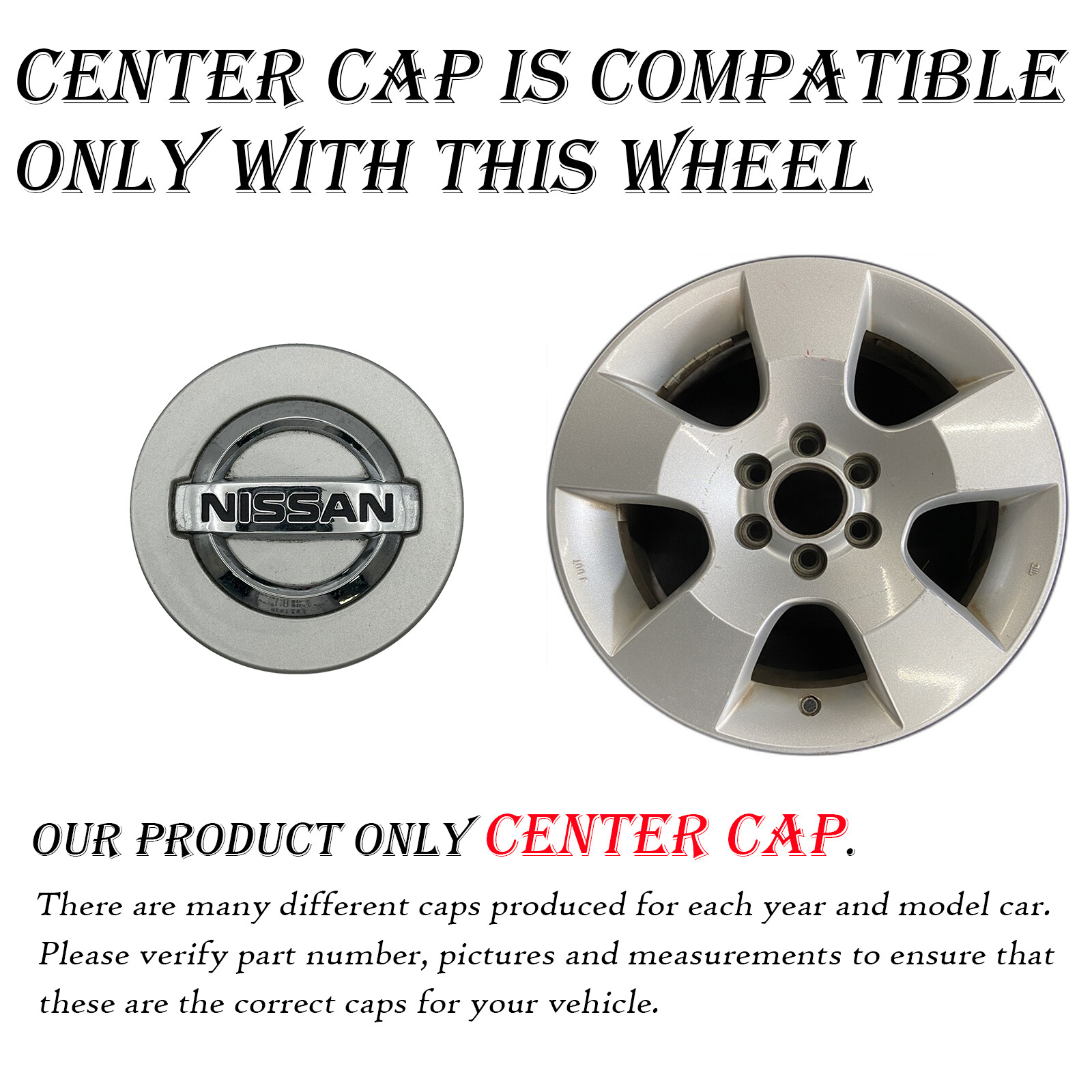 Please VERIFY THE PART NUMBER on your current center cap or hubcap before purchasing. Some center caps/hubcaps look the same but are different sizes. Our primary purpose is for both parties (buyer and seller) to save money and time on returns. Your satisfaction is essential to us. Some center caps/hubcaps look the same but are different sizes. Our primary purpose is for both parties (buyer and seller) to save money and time on returns. Your satisfaction is essential to us. **Item Specifics**Brand :NissanManufacturer Part Number :40342-EA210, 40342-ZH10A, 40342-EA21APlacement on Vehicle :Front,Rear,Left,Right Description Used, will have light scratches but in good working condition.Picture of rim for reference of likely wheel the center cap fits on.Please make sure these are the parts that will fit your wheels, **match the part numbers on this listing to the back of your cap**. We try to provide you with as much information as possible, please ask us if you have any questions or concerns! If you do not know the information of your wheel/cap or can not locate it feel free to send us a picture Along with detailed information on what exactly you are interested/looking for. OEM Wheel Specialists Serving USA Since 1958. 147,000+ Wheels Sold. 30 – Day Money Back Returns. No fuss, No Hassles, No Restocking Fee, We Will Make It Right. 99.7% of shipments are shipped same day All the trademarks, company names or logos referenced are used for identification purposes only and are the property of their respective owners. Shipping We provide shipping to the lower 48 Contiguous states, we do not ship to APO's. If you need a wheel shipped to Alaska, Hawaii, or Puerto Rico, please contact us. All shipments to these regions are FINAL SALE and cannot be returned. If we have agreed to ship outside of these restrictions, the customer is responsible for all taxes, fees, etc. We welcome local pick up at our Anaheim shop (M-F 8am-5pm PST), please message us for details. We ship every business day via USPS, UPS or Fedex (At sellers discretion), orders are shipped within 1 business day of purchase. Please provide a valid contact number for shipping purposes. We pack your new wheel using the best safety standards for travel, if you suspect the shipping carrier is responsible for damages, please contact us ASAP so we may resolve the problem. Please allow 3-7 days for delivery, depending on your location, most areas in the U.S. are within 5 days. Due to high volumes, signature is not required on our shipments. It is very important to make sure you have a responsible party at your residence to receive the package on the expected ETA. Santa Ana Wheel is not responsible for reimbursing packages that were lost or stolen due to negligence. We cannot guarentee arrival times, but we try to be as accurate as possible when we provide you with your tracking number. Once your purchase is complete, you will receive 2 important emails: 1. When your order has shipped out, 2. When your shipment has arrived. Please pay close attention to arrival times and your provided contact email for any issues or updates. Expedited shipping is available, the buyer must contact us before the wheel is purchased and shipped. (Estimated $20 more) Shipping fees are not refundable unless it is determined Santa Ana Wheel is responsible for shipping an incorrect or damaged wheel. We allow order cancellations, but we must be contacted prior to the wheel being shipped out. Once the wheel is scanned and en route, a return request must be started on the buyers end. In the event you must return the wheel back to us, please pack it the same way with the same material it was shipped in to prevent damage. Returns We offer a 30-day money back guarantee, as long as the item has not been installed on a vehicle and in the same condition when purchased. If we have shipped a cap that is different then what is stated in the listing and pictures, we will be responsible for all return shipping fees. The easiest process for returns: 1\. 2\. 3\. Ship the wheel and original invoice back to us in the original condition and packaging by dropping off at a local UPS or Fedex Facility. 5\. The correct amount of refund will be processed once we receive the wheel back in the expected condition. 6\. We ask to help resolve any individual issues before you leave a negative review. What is NOT Refundable Any wheels that have been installed on a tire and/or vehicle. So please be sure the wheel is the correct one you ordered before installing. Wheels that have been altered from the original state when purchased. Painted, chromed, etc. FAQ How do i make sure this is the correct center cap for my vehicle? Before you purchase your center cap please carefully read the description and fitments of this cap to assure it does in fact fit your EXACT vehicle ( Year, Make, Model and size of wheel). Also if you have your original cap on your vehicle or in your possession, flip the cap over and match the part numbers we have on our listing. What if my cap looks the same but the part no. doesn't match? Some caps have multiple numbers for the same cap, depending on the year. Please send pictures of your cap to us so we can be 100% sure before sending. What if I can't tell the finish from the picture? Please send your phone number via message and we will send detailed pictures ASAP What if i need multiple items but the quantity doesn't does show you have them? If you need multiple items and shows we do not have enough quantity listed please give us a call to check availability. Please have information from the listing. We will ask for a Number at the end of the listing title to reference which item you are referring to for example:\[ Single OEM 2000-2004 Chevy Chevrolet Corvette CENTER CAPS 9593475 5105\] The title will have the Year, Make, Model, Manufacturer Part Number and Hollander number (4-5 digit number). We reference our listings by the Hollander Number so in this case the Hollander number y