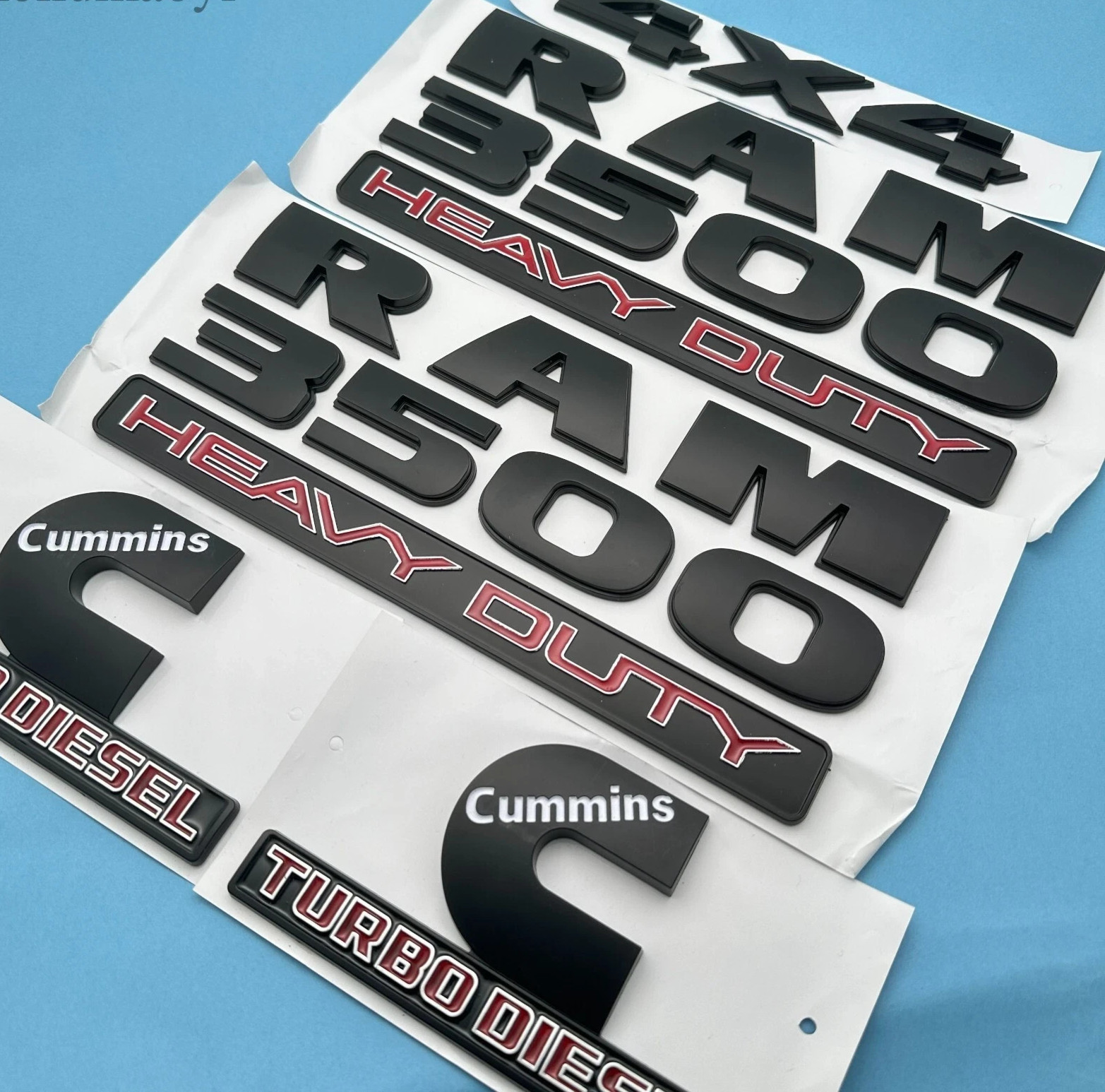 #### _**Product Introduction**_ Upgrade your vehicle with this emblem set. It includes “Ram 3500”, “5.7 liter hemi”, and “4x4” emblems, perfect for front doors, fenders, and rear to add a customized touch. #### _**Product Features**_ - Durable ABS Build: Made from quality ABS plastic, UV - stable and fade - resistant for long - lasting use. - Easy Adhesive Install: Strong adhesive backing allows for quick, tool - free setup—just clean, peel, and stick. #### _**Product Specifications**_ - Fitment: Vehicle front doors, fenders, rear (left & right) - Package: 2 × “Ram 3500” Emblems + 2 × “CUMMINS TURBO DIESEL” Letters + 1 × “4x4” Emblem - Installation: Adhesive - backed (follow clean & press steps).