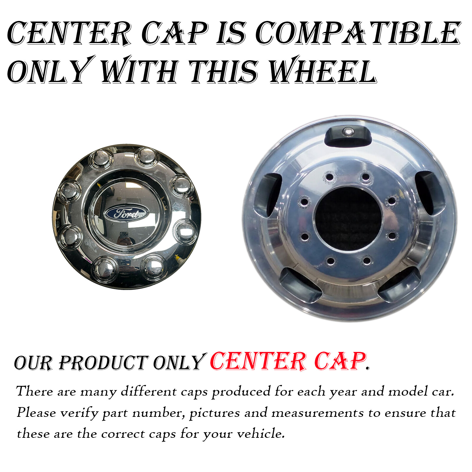 Please VERIFY THE PART NUMBER on your current center cap or hubcap before purchasing. Some center caps/hubcaps look the same but are different sizes. Our primary purpose is for both parties (buyer and seller) to save money and time on returns. Your satisfaction is essential to us. Some center caps/hubcaps look the same but are different sizes. Our primary purpose is for both parties (buyer and seller) to save money and time on returns. Your satisfaction is essential to us. **Item Specifics**Brand :FordManufacturer Part Number :HC3C-1A096-XB, HC3C-1A096-AD, SC3J-1A096-XAPlacement on Vehicle :REAR Description Used, will have light scratches but in good working condition.Picture of rim for reference of likely wheel the center cap fits on.Please make sure these are the parts that will fit your wheels, **match the part numbers on this listing to the back of your cap**. We try to provide you with as much information as possible, please ask us if you have any questions or concerns! If you do not know the information of your wheel/cap or can not locate it feel free to send us a picture Along with detailed information on what exactly you are interested/looking for. OEM Wheel Specialists Serving USA Since 1958. 147,000+ Wheels Sold. 30 – Day Money Back Returns. No fuss, No Hassles, No Restocking Fee, We Will Make It Right. 99.7% of shipments are shipped same day All the trademarks, company names or logos referenced are used for identification purposes only and are the property of their respective owners. Shipping We provide shipping to the lower 48 Contiguous states, we do not ship to APO's. If you need a wheel shipped to Alaska, Hawaii, or Puerto Rico, please contact us. All shipments to these regions are FINAL SALE and cannot be returned. If we have agreed to ship outside of these restrictions, the customer is responsible for all taxes, fees, etc. We welcome local pick up at our Anaheim shop (M-F 8am-5pm PST), please message us for details. We ship every business day via USPS, UPS or Fedex (At sellers discretion), orders are shipped within 1 business day of purchase. Please provide a valid contact number for shipping purposes. We pack your new wheel using the best safety standards for travel, if you suspect the shipping carrier is responsible for damages, please contact us ASAP so we may resolve the problem. Please allow 3-7 days for delivery, depending on your location, most areas in the U.S. are within 5 days. Due to high volumes, signature is not required on our shipments. It is very important to make sure you have a responsible party at your residence to receive the package on the expected ETA. Santa Ana Wheel is not responsible for reimbursing packages that were lost or stolen due to negligence. We cannot guarentee arrival times, but we try to be as accurate as possible when we provide you with your tracking number. Once your purchase is complete, you will receive 2 important emails: 1. When your order has shipped out, 2. When your shipment has arrived. Please pay close attention to arrival times and your provided contact email for any issues or updates. Expedited shipping is available, the buyer must contact us before the wheel is purchased and shipped. (Estimated $20 more) Shipping fees are not refundable unless it is determined Santa Ana Wheel is responsible for shipping an incorrect or damaged wheel. We allow order cancellations, but we must be contacted prior to the wheel being shipped out. Once the wheel is scanned and en route, a return request must be started on the buyers end. In the event you must return the wheel back to us, please pack it the same way with the same material it was shipped in to prevent damage. Returns We offer a 30-day money back guarantee, as long as the item has not been installed on a vehicle and in the same condition when purchased. If we have shipped a cap that is different then what is stated in the listing and pictures, we will be responsible for all return shipping fees. The easiest process for returns: 1\. 2\. 3\. Ship the wheel and original invoice back to us in the original condition and packaging by dropping off at a local UPS or Fedex Facility. 5\. The correct amount of refund will be processed once we receive the wheel back in the expected condition. 6\. We ask to help resolve any individual issues before you leave a negative review. What is NOT Refundable Any wheels that have been installed on a tire and/or vehicle. So please be sure the wheel is the correct one you ordered before installing. Wheels that have been altered from the original state when purchased. Painted, chromed, etc. FAQ How do i make sure this is the correct center cap for my vehicle? Before you purchase your center cap please carefully read the description and fitments of this cap to assure it does in fact fit your EXACT vehicle ( Year, Make, Model and size of wheel). Also if you have your original cap on your vehicle or in your possession, flip the cap over and match the part numbers we have on our listing. What if my cap looks the same but the part no. doesn't match? Some caps have multiple numbers for the same cap, depending on the year. Please send pictures of your cap to us so we can be 100% sure before sending. What if I can't tell the finish from the picture? Please send your phone number via message and we will send detailed pictures ASAP What if i need multiple items but the quantity doesn't does show you have them? If you need multiple items and shows we do not have enough quantity listed please give us a call to check availability. Please have information from the listing. We will ask for a Number at the end of the listing title to reference which item you are referring to for example:\[ Single OEM 2000-2004 Chevy Chevrolet Corvette CENTER CAPS 9593475 5105\] The title will have the Year, Make, Model, Manufacturer Part Number and Hollander number (4-5 digit number). We reference our listings by the Hollander Number so in this case the Hollander number you would be r