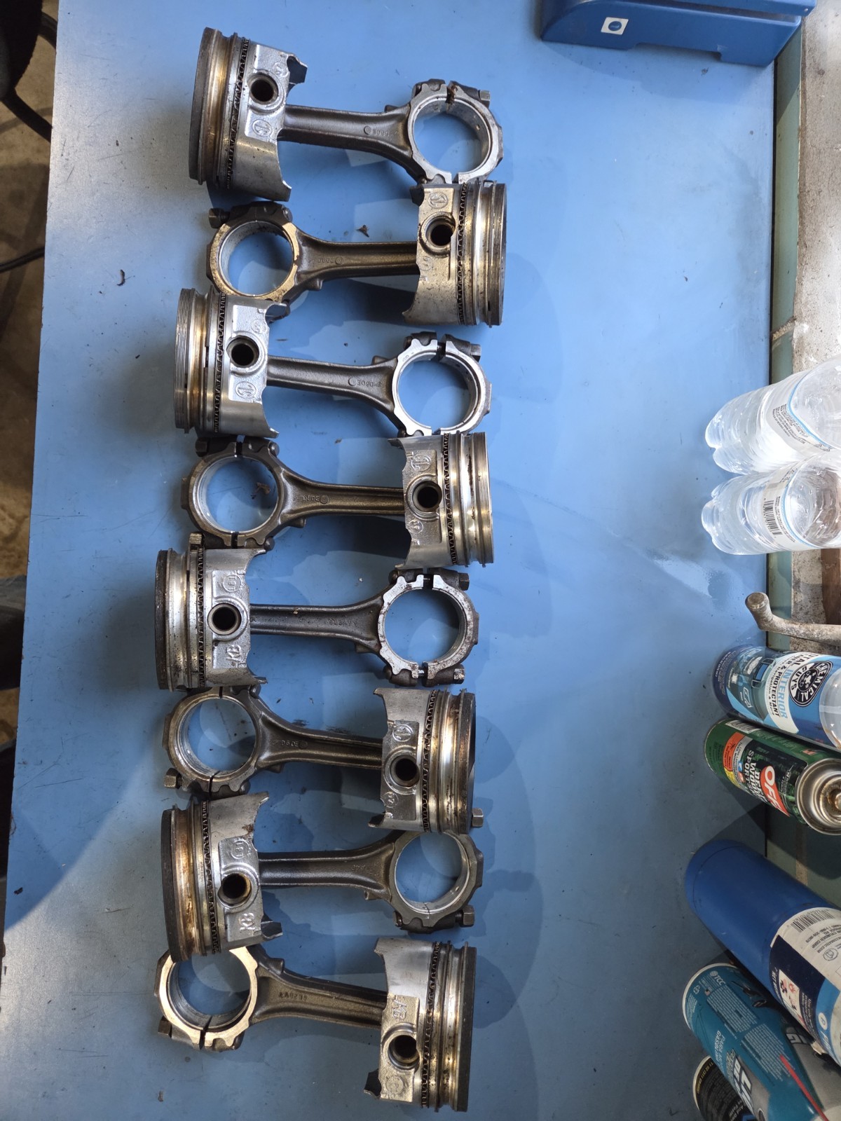 Set of 8 kb hypereutectic pistons 181 series with rods. Rods are d60e. I believe pistons are .030 overbore according to measurements at skirt... See pics. They will clean up nice from where they have been setting around I think. The motor that they were in didn't have much run time I think, it wiped out cam and lifters and was tore down. They are sold as is . I have few other 351w parts available too.