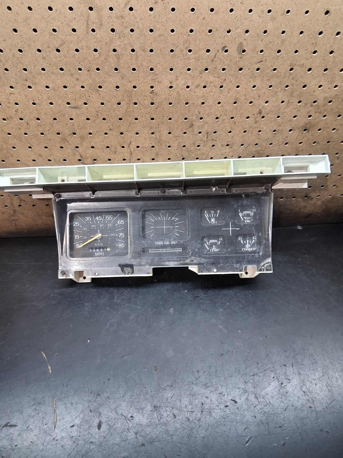 The clear cover has scratches see pictures. 4600 miles The product is a Ford Bullnose Diesel Gauge Cluster Tach for 1983-86 Ford Trucks F250 and F350. This instrument cluster features tachometer readings specifically designed for diesel vehicles, providing essential information for drivers to monitor their truck's performance. Made by Ford, this gauge cluster is a reliable and authentic part tailored for these specific truck models, ensuring accurate readings and compatibility with the vehicle's system.