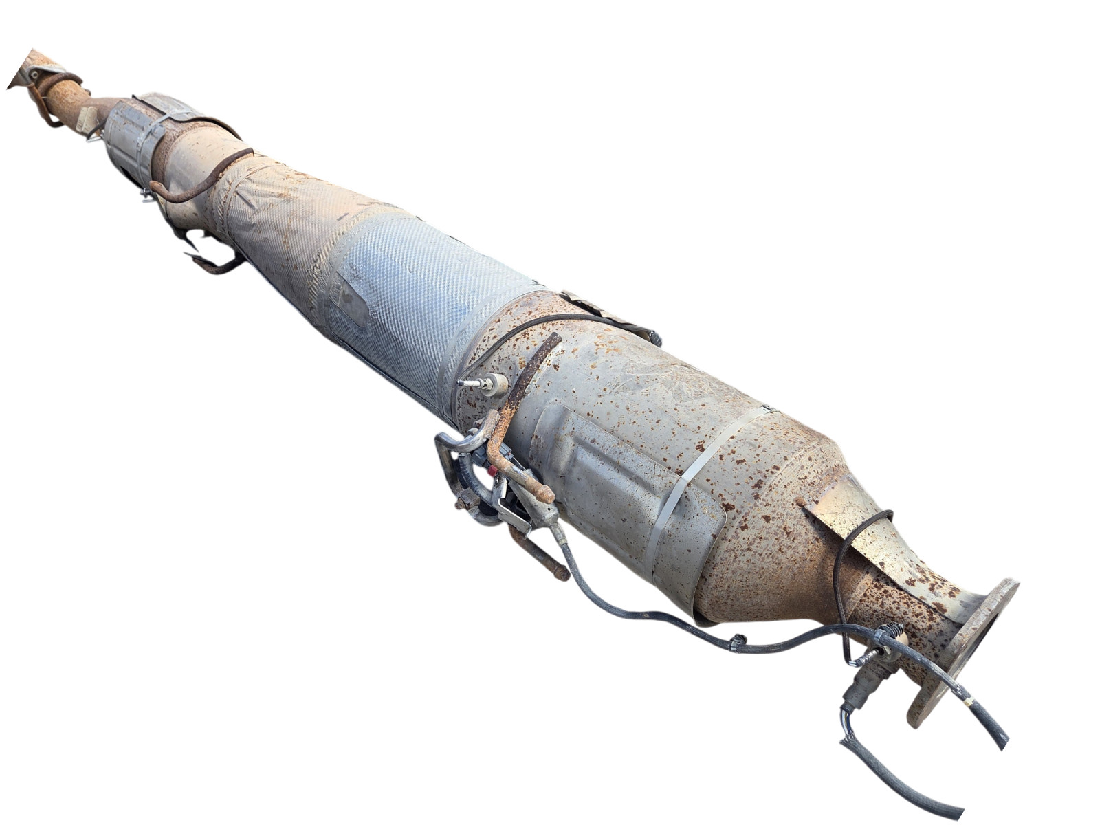 Genuine OEM Ford Super Duty 6.7L Diesel Particulate Filter (DPF) Assembly **Product Details:** - **Condition:** Used. Removed from a functioning vehicle. Exhaust shows surface rust consistent with normal use, but the body is solid. - **OEM Authenticity:** Features original FoMoCo (Ford Motor Company) stampings. - **Compatibility:** Designed for 2011–2016 Ford F-250, F-350, F-450, and F-550 Super Duty trucks equipped with the 6.7L Powerstroke Diesel engine. - **Includes:** Main DPF/Converter body and attached sensor bungs (as pictured). _Please verify the part number **BC34-5K282-DA** with your mechanic or dealer to ensure fitment for your specific VIN._