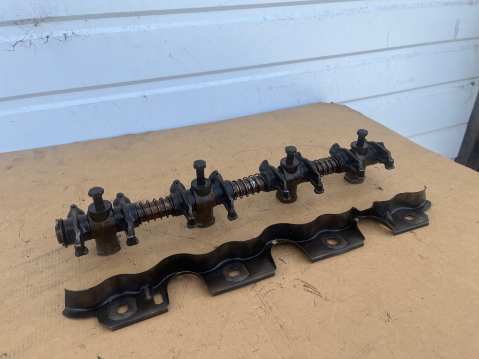 Ford FE 352 360 390 Rocker Arm Shaft Assembly. Comes with Drip Rail Oil Baffle, and includes OEM bolts. Rocker is shaft are in good used condition. Please see all pictures and ask all questions before purchase. B3