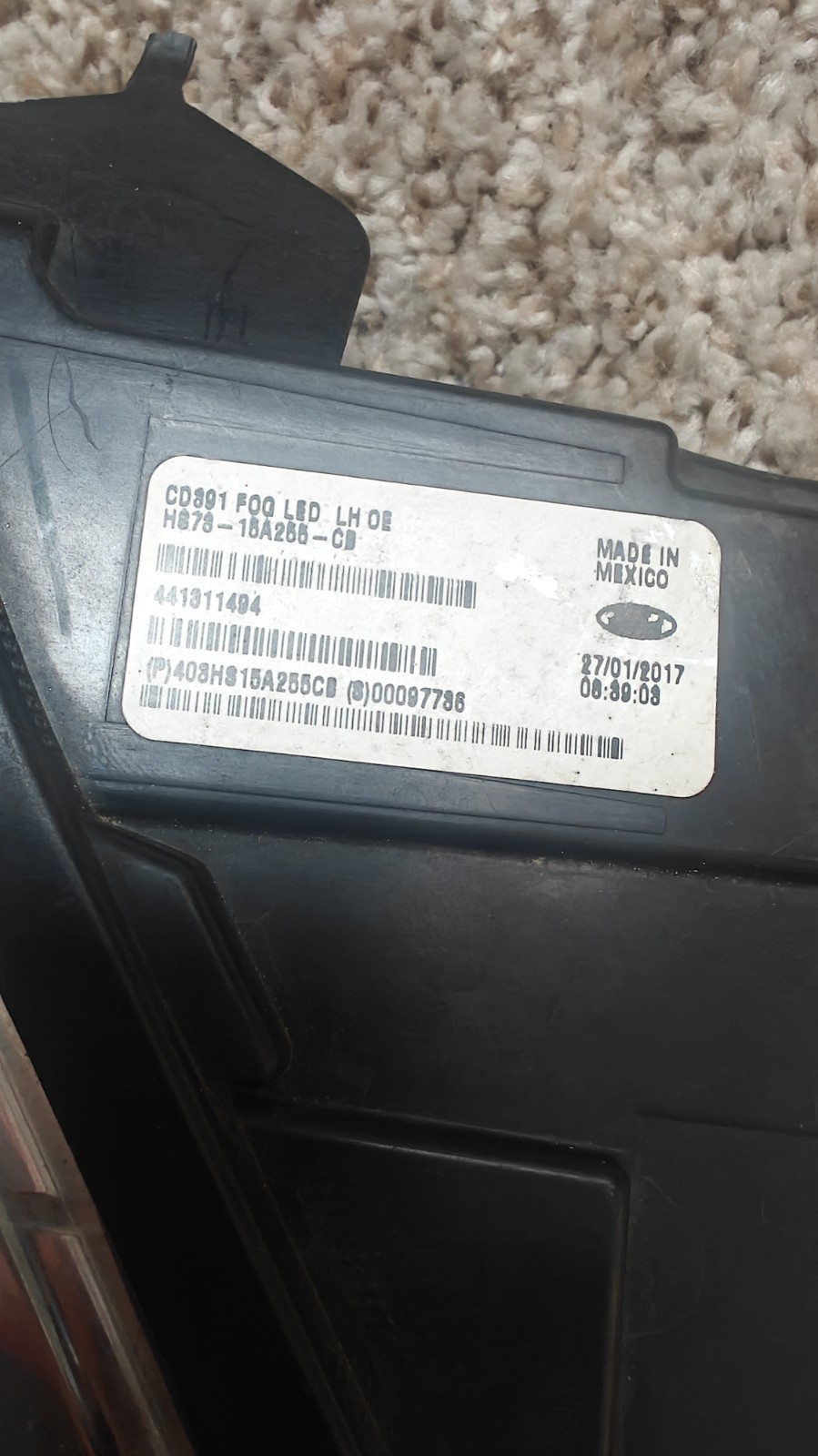 Item Description This is an original equipment manufacturer (OEM) left-side LED fog light assembly for 2017–2019 Ford Fusion vehicles. Condition: Used Brand: Ford Model: Fusion Years: 2017, 2018, 2019 Placement on Vehicle: Front, Left (Driver Side) Lighting Technology: LED (Light Emitting Diode) Light Color: Cool White Original Part Number (OEM P/N): HS73-15A255-CB Crucial Note: Please ensure the part number (HS73-15A255-CB) matches the number on your old part to guarantee proper fitment and compatibility with your specific vehicle. Condition Details The item is in good working condition. Not all mounting tabs are intact, which should be considered during installation (additional securing may be needed). The lens may show minor scratches or scuffs from normal road use, which are visible in the provided photographs. Please review all attached photos carefully to best understand the item's exact condition. Additional Information Manufacturing Location: Made in Mexico (as indicated on the label in photos).