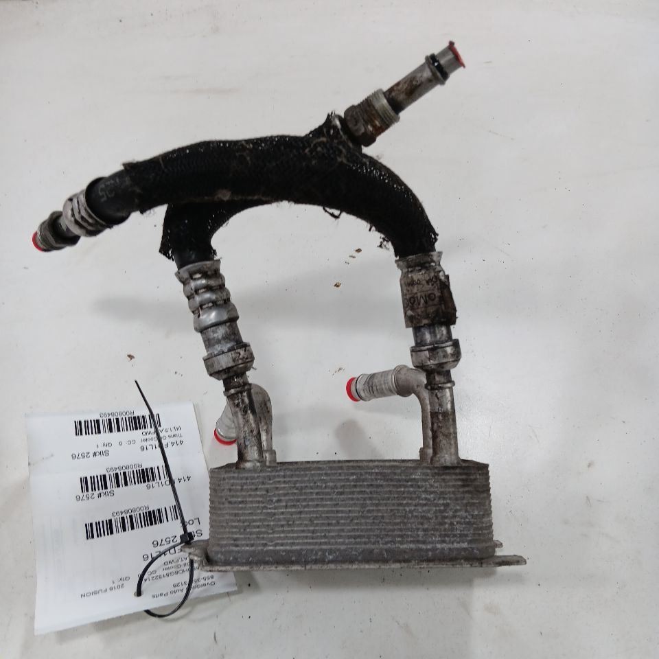 Item Description This is a quality used OEM part has been professionally removed and inspected. It is stored indoors and ready to be shipped. The pictures are the exact part you will receive. **Donor Vehicle** - **2016 FUSION** **Stock Number** - **2576** **This part will fit these following makes and models with these options** 2016 FUSION **oil cooler** **{4},1.5,AT,FWD** More Items! We are a family owned business that takes pride in our fast handling times and friendly customer service. We've been providing high quality used OEM auto parts for many years and we love what we do! Please contact us with any questions prior to purchasing. ``` Payment #### Payment ``` All orders must be paid in full prior to shipment. We accept credit card and cash for Local Pickup orders. If payment is not received, an Unpaid Item case will be opened for the sake of seller fee reimbursement. ``` Shipping #### Shipping ``` Items are shipped after receiving cleared payment. We ship to US addresses within the continental 48 states. Shipping to AK, HI, PO Box, APO, FPO & US Protectorates: please contact first as we may be able to arrange shipping for an additional charge (depending on the part). ``` Warranty #### Warranty ``` All parts come with our standard 60 day warranty. Warranty claims must be made with our warranty department. Labor and costs associated with part installation are not included in the warranty, parts only. ``` Returns #### Returns ``` All parts must be returned in their original condition to receive full credit. Returns are accepted up to 60 days after date of purchase. Please message us with questions.