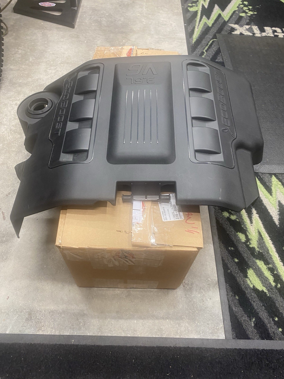 **Ford Transit Van** **ecoBoost Engine Cover.** **OEM Ford Mounting Bracket & Hardware included.** **Excellent Condition.** **Excellent moisture control.** **They should’ve come standard.** **Only on my Van a few months.** **No longer have the Van.** **Covers already fitted for a J&L Oil Separator Catch Can.** **Another must have for any ecoBoost.** **Fits ‘20-‘26 ecoBoost Transits.**