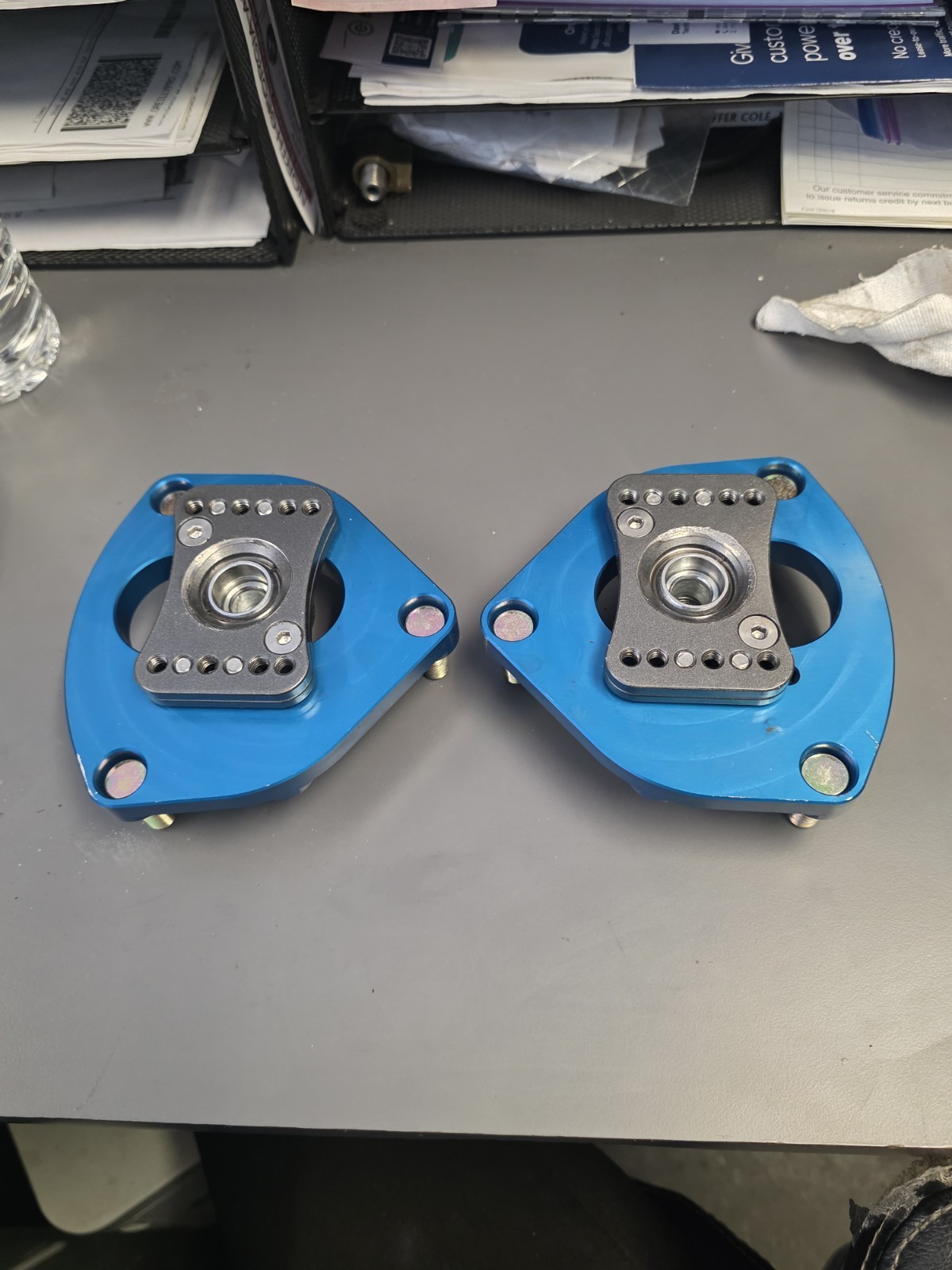 Fortune Auto camber/caster plates suitable for Evo X, Lancer Ralliart, and other compatible MacPherson-strut Mitsubishi platforms. Plates are in good working condition with no cracks, binding, or damage to the spherical bearings. Only has one scratch on back side of one plate. Adjustment slides move smoothly. Ideal for fine tuning alignment for lowered cars, track setups, or dialing in additional camber/caster beyond factory range. Direct bolt-on with most coilovers that use OEM-style top mounts. Confirm fitment with your specific suspension before purchasing. Item ships securely and exactly as pictured.