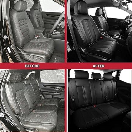 This set includes seat covers for your full set of seats, made of high-quality black faux leather material. The adjustable straps and cushioned seats provide maximum comfort for you and your passengers, while the waterproof and anti-slip features ensure safety and cleanliness. With its easy installation and airbag-friendly design, this seat cover set is perfect for any car or truck. The breathable material and anti-dust mites make it a great choice for those who want to keep their interiors clean and fresh. Get your hands on the FREESOO Car Seat Covers Full Set and enjoy a comfortable and safe ride every time **.** **The manufacturer says=** **FREESOO Car Seat Covers Full Set, Black Brown Leather Seat Covers for Trucks SUV Cars, Waterproof Car Seat Cover Cushion Protector, Luxury Front Car Seat Covers and Back Seats Fit for Most Vehicles l MSRP $159.99** **Seller's Note:** The manufacturer keeps calling this "leather" It sure looks the part, but at this price I don't think it can be real cowhide leather. I am not just saying this as some sort of activist rant about animal abuse. I think it is faux leather and I am going to stand by that. I, having so many animals in and out of my car, WANT faux leather because it is harder t tear and easier to fix. There is really nothing you can do to fix real leather short of stitching it up and staring at the scars, but I don't think it is real leather and I will keep sayng this. There is nothing wrong with faux leather AND it just happens to be a little easier on the animals too. **Here is some information we found online about this item** **Size: #1 F4 Full Set - 5PCS** **Fit TypeUniversal Fit** **BrandFREESOO** **ColorBlack-Brown** **ManufacturerFREESOO** **About this item** **Universal Car Seat Cover: The black car seat covers full set are digitally scanned and precision cut by laser machine for a glove-like fit. Car back seat cover set can be adjustable to fit different car seat cover widths, which is compatible with most Cars, SUV, Pickup and Trucks.** **Luxury Leather Seat Covers: FREESOO leather seat covers for cars coordinate with most car interior accessories, featuring high-quality NAPPA Leather. These breathable, skin-friendly, and ultra-soft luxury leather car seat covers full set to make your journey more comfortable.** **Superior Car Seat Protector: These waterproof seat covers for cars adopts a four-layer structure, providing exceptional waterproof and protection capabilities to safeguard your carseat from pet scratches, coffee spills and harmful rays. It is also easy to clean, simply wipe with damp cloths to make your waterproof car seat cover set looks brand new for years.** **Maintain Existing Functionality: Specifically tailored to all details of car seats and ensure the full function, not affecting at all the use of airbag, armrests, seat adjustments, child car seat and safety belt. Full coverage front car seat covers come with back organizer for improved user convenience.**