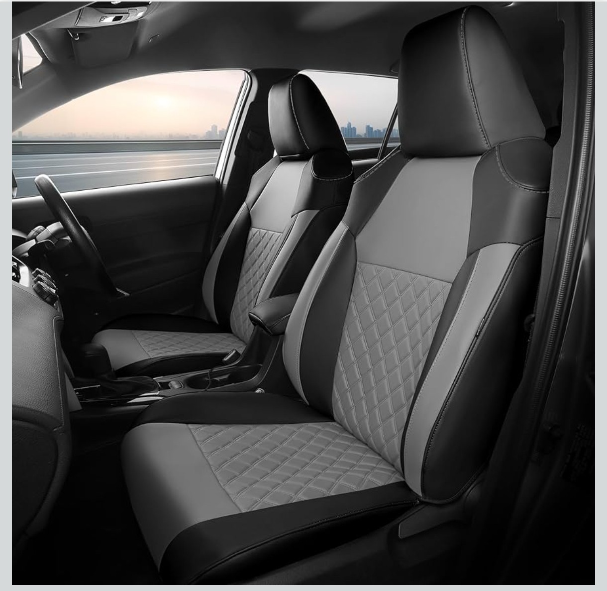 Looks new, unused. **But two rear headrests are missing**. As is. the back headrest is lost!!! **NOT FOR HYBRID!!!** FREESOO Custom 1:1 Seat Covers for Corolla Cross L LE XLE 2025 2024 2023 2022 2021, Not for Hybrid, Faux Leather Seat Covers Full Set - Black Grey Customized Car Seat Covers:Precisely matched to Toyota Corolla Cross 2025 2024 2023 2022 2021 Customized for L/LE/XLE models; seamlessly integrates with airbags, armrests and seat belts. Not compatible with hybrid models Complete Protection:The waterproof car seat cover features a four-layer construction that provides superior protection against coffee spills or pet scratches on your car seats. It's also easy to clean, just wipe with a damp cloth to keep your car waterproof seat covers looking new for years to come. Safety Design:Specially tailored for Toyota Corolla, it can closely fit all the details of the car seat cover to ensure complete functionality and won't affect the function of the baby seat, seat belt buckle, seat lifter, rear armrest box and airbag to ensure that the airbag can be deployed correctly in the event of a collision Fashionable Design:Available in 3 colors (black and red, black and black and grey), these covers will not only protect your seats, but also Enhance the interior style of Toyota Corolla Easy Installation: Fit Complete kit with hooks, straps, and step-by-step video guide. Achieve professional-grade installation in under 60 minutes—no tools needed.