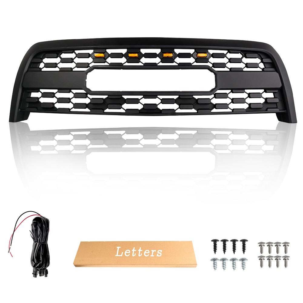 Front Bumper Grille For 2003 2004 2005 2006 Tundra Grille W/3LEDs Matte Black Fitment: For **2003-2006 Toyota TUNDRA** Package includes: 1\* Front grille with 4 amber led lights 1\* Wire hardness 1\* set of inner insert Specification: Color: Matte Black Placement on vehicle: Front Upper Material: High-quality ABS Plastic **Condition:**100% brand new Feature: \*Made from high quality ABS Plastic materials,designed for durability and longevity. \*Allows air to pass by and cool down the rediator and engine easily. \*Prevents outside objects from damaging the inner parts of vehicle while driving. \*Attractive appearance and affordable price to have your vehicle better decorated into fancy and charming style. \*Easy to install. No cutting or drilling required.Direct bolt-on. Tips: Please confirm your car model and year before purchasing. We can guarantee the high quality and agree 1:1 replace for the defective goods. Any questions,pls send messages to us. \- The Merchandise is US stock. Merchandise will be shipped out within 1-3 working days and it will generally reach you within 1-5 business days after dispatching.Hope we can have your patience. But just in case, please check if the package has already been sent to the destination once when you're not there. \- We send the most packages via Ups Usps.Please note that we CAN'T ship items to addresses like PO BOX or Military Area (AA/ AE/ AEO/ APO/ FPO). Please understand that the date of the merchandise reaching you varies by complexity of destination(s), weather conditions or holiday.Thank you! Return&Refund \- The buyer can free return the goods within 30 days after receipt of the goods, and if you need a return label, please contact us in advance.If it is our problem, we will provide the return label. \- After receiving the returned goods, we will refund the customer according to the price of the goods or make a replacement as your require. Contact Us \- If you have any questions or suggestions,please email to us without any hesitate.Your messages will be answered within 24 -48 hours. We shall try our best to solve your problem to your satisfaction. \- After you have made your purchase you can either click on 'Pay now' or follow the instructions in an automated email that you will receive shortly after your purchase. \- During the checkout, you can make an immediate payment by PayPal or select an alternative method of payment, and receive the necessary payment details. \- We DO NOT accept payments by cheque. \- Please note: If you have already marked payment as sent then you MUST mark as payment not sent otherwise the PAY NOW button will not be available.