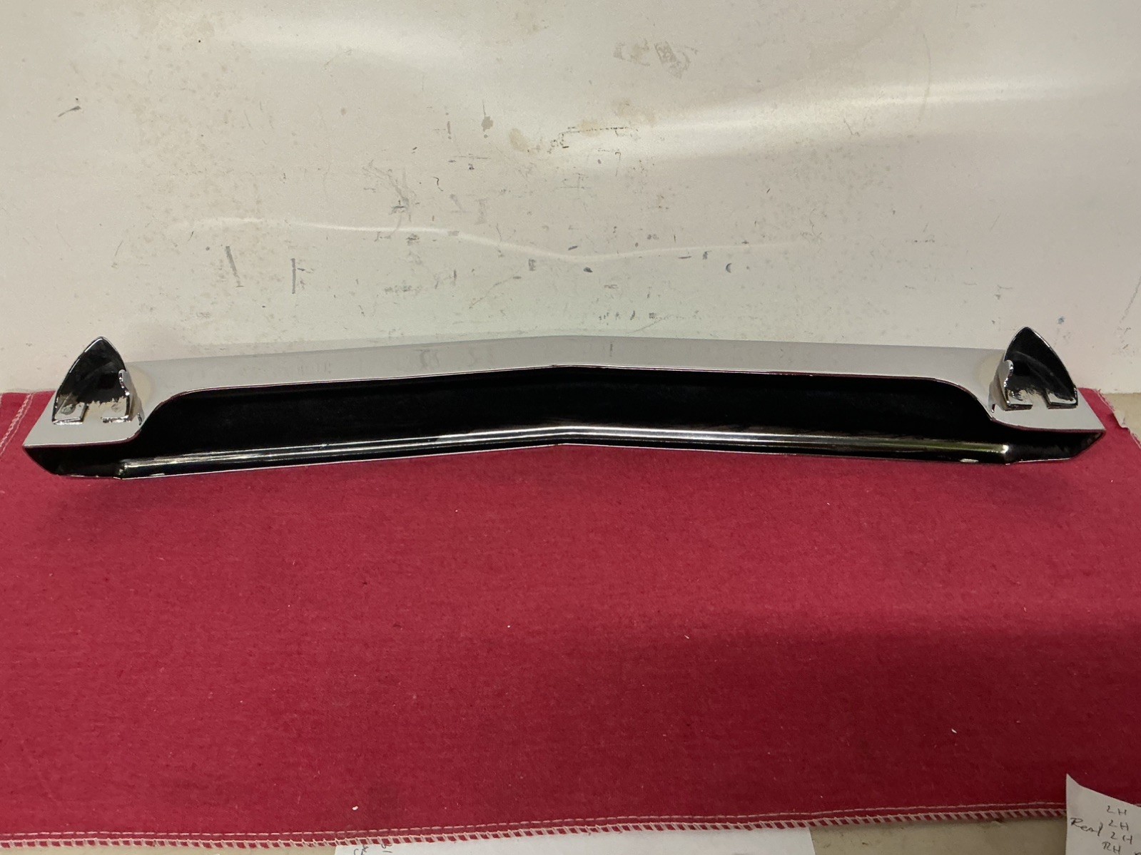 This is a rechromed original part. It is not perfect but a real nice part. I tried to show some of the blemishes but they are hard to show. There is no pitting on the chrome side but some on the rear side that has been brushed with a rust inhibitor. This does not come with any mounting hardware or center rubber molding. I do have other 1964 Plymouth parts and a few 63 parts if anyone is interested I can list those just let me know your needs thanks.