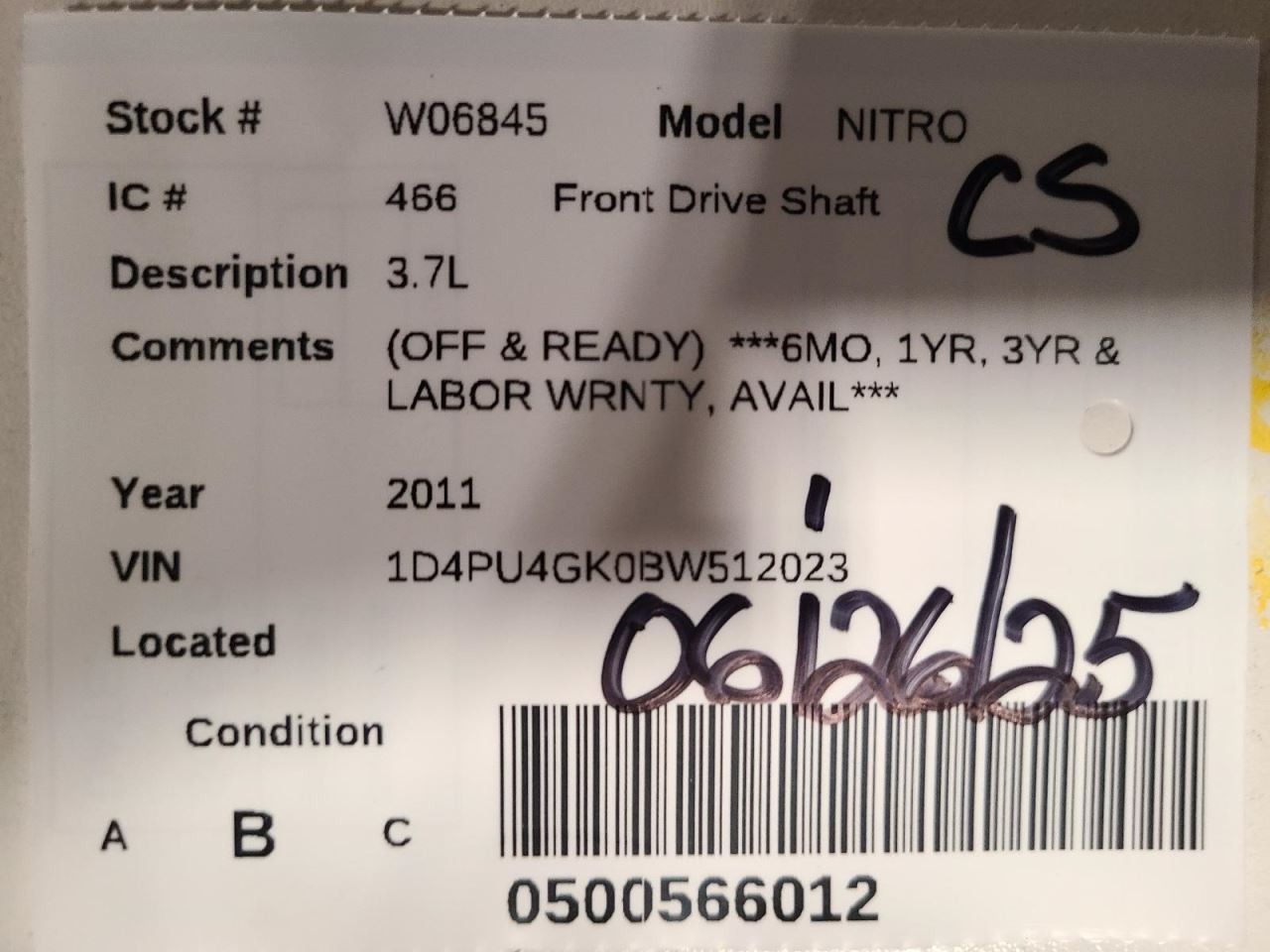 Front Drive Shaft 3.7L Fits 07-11 NITRO 2109726