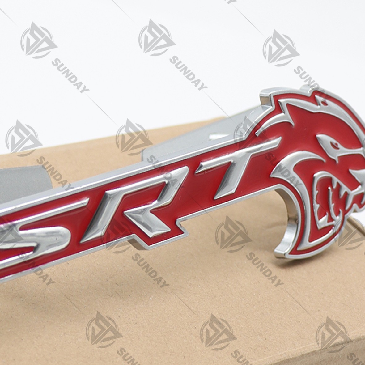 **Introduction:** Enrich the style and appearance of your Car, making your vehicle stand out and be recognized immediately **Features:** 1\. Fine workmanship, smooth lines, quite attractive. 2\. The appearance is fashionable and dynamic, and the overall line is very complete; **Specification:** Product Name: SRT Hellcat Grille Emblem Product Material: Metal Product Color: Chrome Red (Gloss Silver Red) Applicable Models: Universal / Dodge car series Installation Position : Front Grille **Includes:** 1 x Grille Emblem