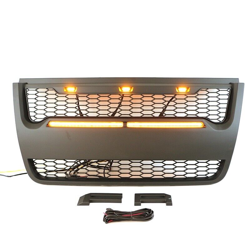 Front Grille Fits For 2006-2010 FORD Explorer Upper Grill Black W/Led &Light Bar
