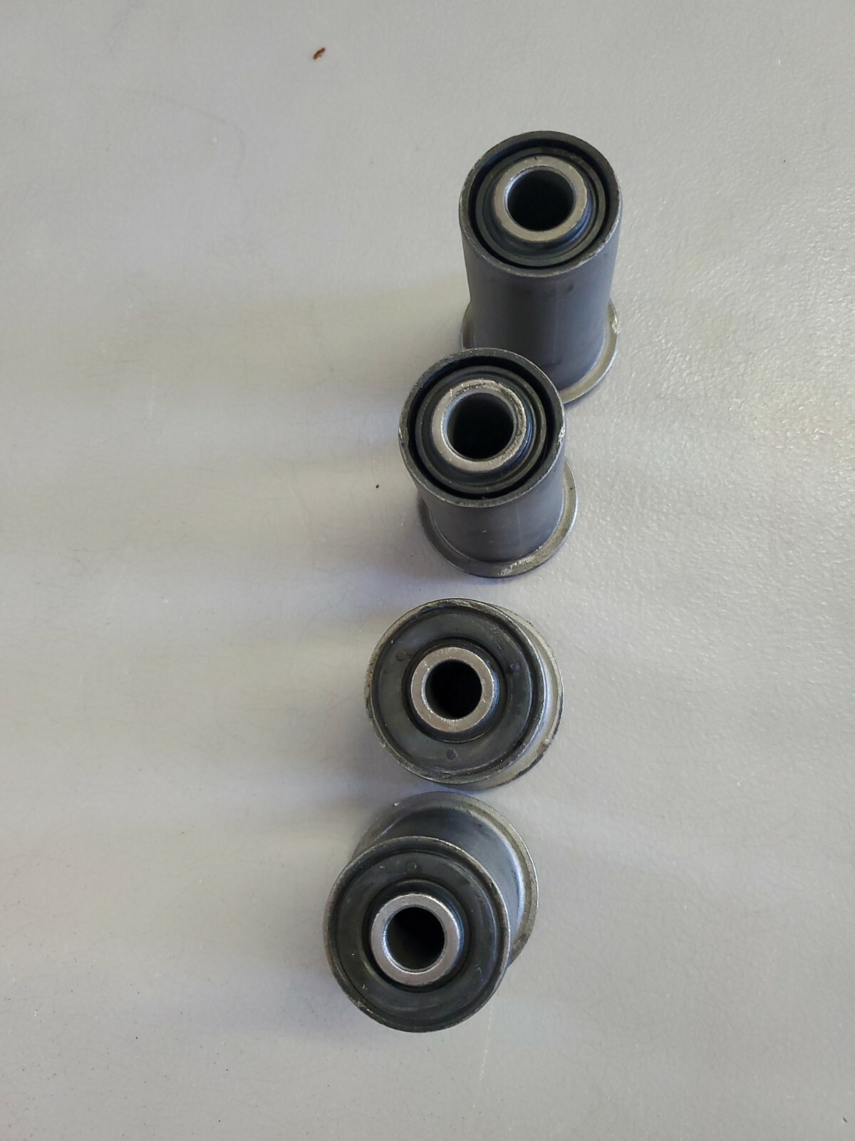 Front Lower Control Arm Bushing For S10 Blazer Jimmy S15 Sonoma. These where in a new set of control arms but I put in steel bushings so these where pressed out. Listed as used but they where never on a car and are in like new condition other than some scratches from pressing them out. You are getting 4 bushings total, enuff to complete 2 arms.