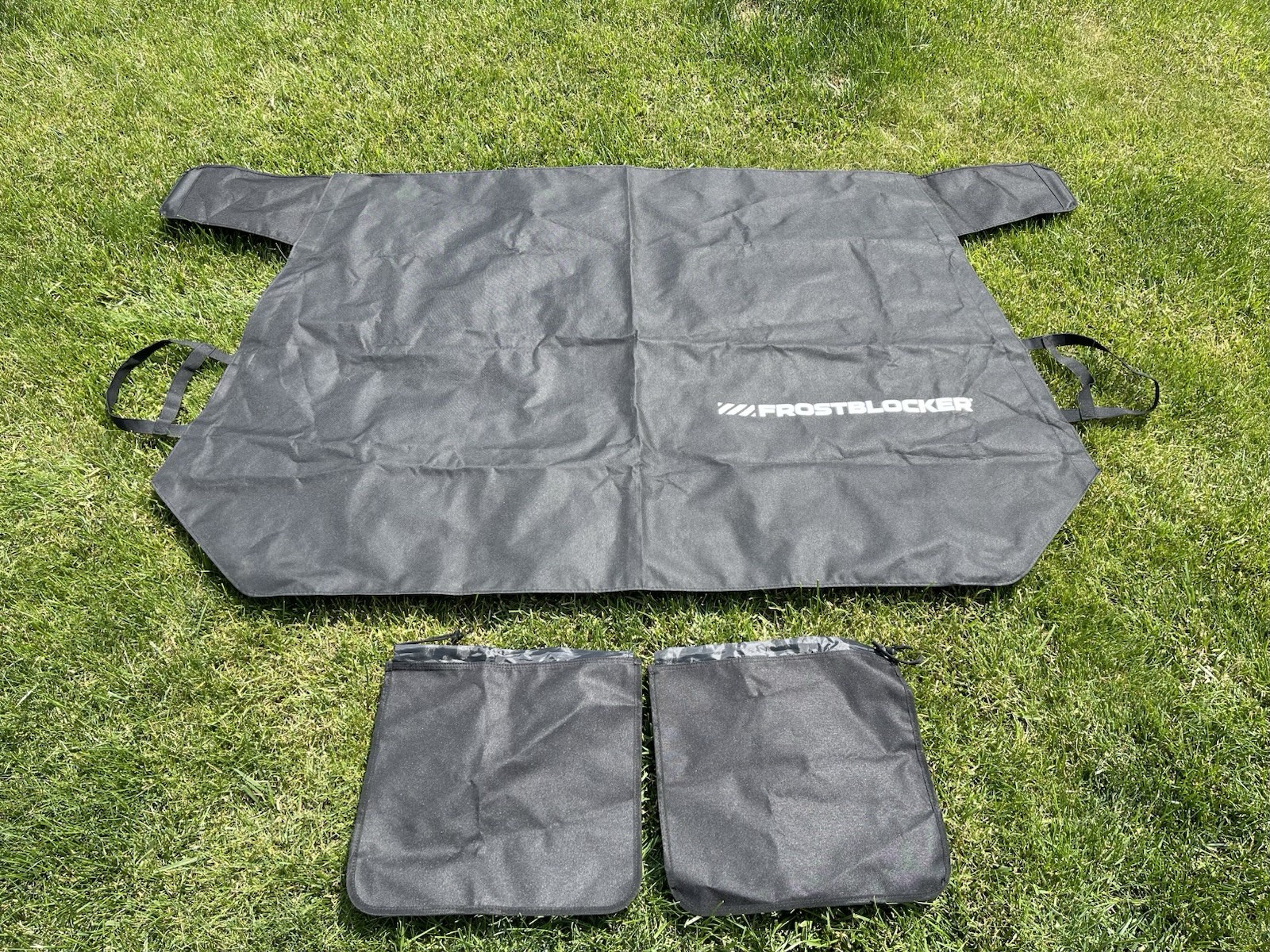 Frost blocker car windshield and mirrors cover. LIKE NEW. Color is black. Comes with: one windshield cover. Measuring approximately 60” x 40” Two side mirror covers. Measuring approximately 15“ x 15“. Small pouch for storage. (X)