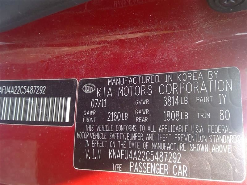 - VIN #: KNAFU4A22C5487292