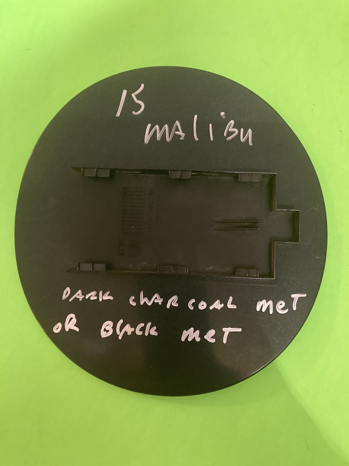 **This is a gas door off of a 15 Malibu. It does not come with a hinge. It slides onto your existing hinge. It is either dark charcoal, metallic or black metallic. I’m not sure.**