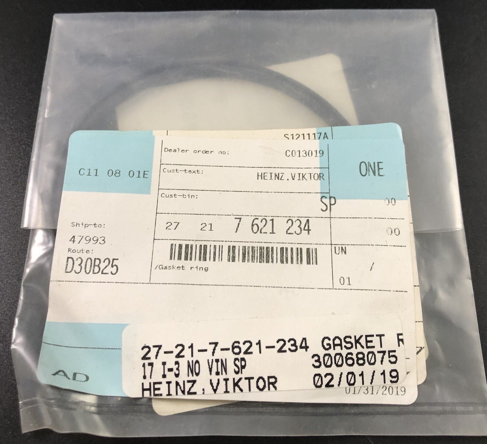 Gasket ring part number 27 21 7 621 234 What you see is what you get.