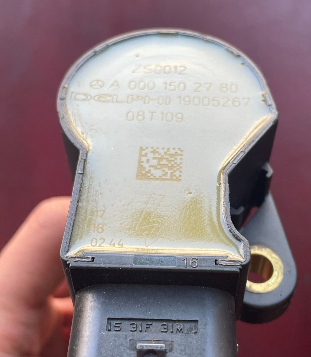 \*\*\*REMANUFACTURED GENUINE MERCEDES-BENZ\*\*\* \*\*DELPHI\*\* SINGLE Ignition Coil \*\*\*These Ignition Coils are NOT aftermarket\*\*\* Part Number # **A 000-150-27-80 ,** **A 000-150-19-80, A 000-150-26-80,** **A 000-150-27-80-28** **Please use our compatibility chart or verify with your part number to see if these parts are right for your car!!!** **_Fits On_** **2007-2008 Dodge Sprinter 2500 V6 3.5L** **2007-2008 Dodge Sprinter 3500 V6 3.5L** **2007-2008 Freightliner Sprinter 2500 V6 3.5L** **2007-2008 Freightliner Sprinter 3500 V6 3.5L** **2006-2009 Mercedes-Benz C230 V6 2.5L** **2010-2012 Mercedes-Benz C250 V6 2.5L** **2006-2007 Mercedes-Benz C280 V6 3.0L** **2008-2012 Mercedes-Benz C300 V6 3.0L** **2013 Mercedes-Benz C300 V6 3.5L** **2006-2013 Mercedes-Benz C350 V6 3.5L** **2009 Mercedes-Benz C63 AMG V8 6.3L** **2011-2013 Mercedes-Benz CL550 V8 4.6L** **2007-2010 Mercedes-Benz CL550 V8 5.5L** **2006-2009 Mercedes-Benz CLK350 V6 3.5L** **2007-2009 Mercedes-Benz CLK550 V8 5.5L** **2006 Mercedes-Benz CLS500 V8 5.0L** **2012-2013 Mercedes-Benz CLS550 V8 4.6L** **2007-2011 Mercedes-Benz CLS550 V8 5.5L** **2007 Mercedes-Benz E280 V6 3.0L** **2008-2009 Mercedes-Benz E300 V6 3.0L** **2012-2013 Mercedes-Benz E300 V6 3.5L** **2011 Mercedes-Benz E350 V6 3.0L** **2006-2013 Mercedes-Benz E350 V6 3.5L** **2013 Mercedes-Benz E400 V6 3.5L** **2012-2013 Mercedes-Benz E550 V8 4.6L** **2007-2011 Mercedes-Benz E550 V8 5.5L** **2009-2014 Mercedes-Benz G550 V8 5.5L** **2013 Mercedes-Benz G63 AMG V8 5.5L** **2007-2013 Mercedes-Benz GL450 V8 4.6L** **2013 Mercedes-Benz GL550 V8 4.6L** **2010-2012 Mercedes-Benz GL550 V8 5.5L** **2008 Mercedes-Benz GL550 V8 5.5L** **2010-2013 Mercedes-Benz GLK350 V6 3.5L** **2006-2013 Mercedes-Benz ML350 V6 3.5L** **2010-2011 Mercedes-Benz ML450 V6 3.5L** **2012-2013 Mercedes-Benz ML550 V8 4.6L** **2008-2011 Mercedes-Benz ML550 V8 5.5L** **2006-2013 Mercedes-Benz R350 V6 3.5L** **2010-2013 Mercedes-Benz S400 V6 3.5L** **2008-2011 Mercedes-Benz S450 V8 4.6L** **2012-2013 Mercedes-Benz S550 V8 4.6L** **2007-2011 Mercedes-Benz S550 V8 5.5L** **2013 Mercedes-Benz SL550 V8 4.6L** **2007-2012 Mercedes-Benz SL550 V8 5.5L** **2006-2008 Mercedes-Benz SLK280 V6 3.0L** **2005-2013 Mercedes-Benz SLK350 V6 3.5L** **2010-2011 Mercedes-Benz SLK55 AMG V8 5.5L** PLEASE NOTE: YOU WILL RECEIVE THIS PRODUCT EXACTLY AS SHOWN IN THE PICTURE ! - **INTERNALLY AND EXTERNALLY CLEANED WITH VARIOUS ULTRASONIC TREATMENTS USING THE LATEST EQUIPMENT IN THE INDUSTRY.** - **ALL PARTS ARE CHECKED FOR MAJOR DAMAGES & CRACKS, ALL COILS ARE TESTED BEFORE SHIPPING.** - **ALL REMANUFACTURED COILS WERE PREVIOUSLY USED MAY HAVE LIGHT SCRATCHES, FADED COLORS AND SIGNS OF USAGE. HOWEVER, THEY STILL FUNCTION AS IF THEY WERE NEW.** **Shipping:** **_Once we have received cleared payment, your item will be shipped within 24 hours Monday-Saturday \[US Holidays excluded\] via USPS. Express shipping options are available, please contact us to inquire._** **Return:** **_Returns are accepted within 30 days of purchase. Please note that all products must include all accessories, adapter, seals, paper work, etc. There will be a 20% restocking fee for opening item(s) based on conditions. We suggest you use a traceable method of shipping as we cannot be held responsible for any lost items._**