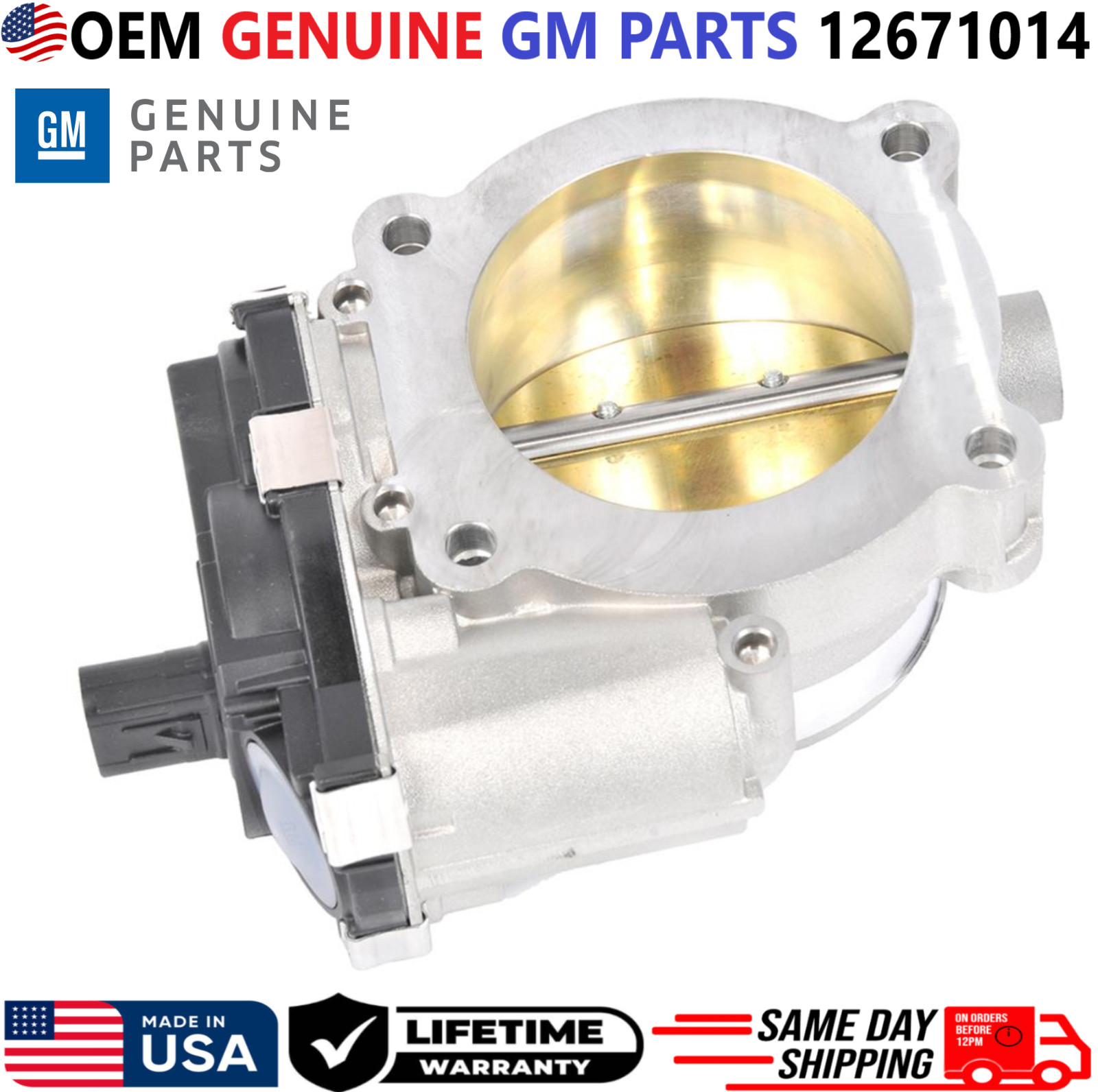 REMANUFACTURED GENUINE GM PARTSThrottle Body For 2014-2025 Cadillac ATS CT6 CTS XT5 XT6 Chevrolet Blazer Camaro Colorado Express 2500 Express 3500 Silverado 1500 GMC Canyon Acadia Savana 2500 Savana 3500 Sierra 1500 3.6L V6 4.3L V6 \*\*\*These Parts are NOT aftermarket\*\*\* \*\*\*FREE SAME DAY SHIPPING & LIFETIME WARRANTY\*\*\* \*\*\*MADE IN THE USA\*\*\* **Manufacturer Part Number: 12671014** **Please use our compatibility chart or verify with your part number to see if these parts are right for your car!!!** Compatible Vehicles, Throttle Body Valve For: **> 2016, 2017, 2018, 2019 Cadillac ATS 3.6L V6** **> 2018, 2019, 2020 Cadillac CT6 3.6L V6** **> 2016, 2017, 2018, 2019 Cadillac CTS 3.6L V6** **> 2019, 2020, 2021, 2022, 2023, 2024, 2025 Cadillac XT5 3.6L V6** **> 2020, 2021, 2022, 2023, 2024, 2025 Cadillac XT6 3.6L V6** **> 2019, 2020, 2021, 2022, 2023, 2024, 2025 Chevrolet Blazer 3.6L V6** **> 2016, 2017, 2018, 2019, 2020, 2021, 2022, 2023, 2024 Chevrolet Camaro 3.6L V6** **> 2017, 2018, 2019, 2020, 2021, 2022 Chevrolet Colorado 3.6L V6** **> 2018, 2019, 2020, 2021, 2022, 2023, 2024 Chevrolet Express 2500 4.3L V6** **> 2018, 2019, 2020, 2021, 2022, 2023, 2024 Chevrolet Express 3500 4.3L V6** **> 2014, 2015, 2016, 2017, 2018, 2019, 2020, 2021 Chevrolet Silverado 1500 4.3L V6** **> 2017, 2018, 2019, 2020, 2021, 2022, 2023 GMC Acadia 3.6L V6** **> 2017, 2018, 2019, 2020, 2021, 2022 GMC Canyon 3.6L V6** **> 2018, 2019, 2020, 2021, 2022, 2023, 2024 GMC Savana 2500 4.3L V6** **> 2018, 2019, 2020, 2021, 2022, 2023, 2024 GMC Savana 3500 4.3L V6** **\> 2014, 2015, 2016, 2017, 2018, 2019, 2020, 2021 GMC Sierra 1500 4.3L V6** PLEASE NOTE: YOU WILL RECEIVE THIS PRODUCT EXACTLY AS SHOWN IN THE PICTURE!!! - **ALL OF OUR PARTS COME WITH NEW NEW HIGH-QUALITY COMPONENTS SUCH AS O-RINGS, SEALS, GASKETS ETC.** - **INTERNALLY AND EXTERNALLY CLEANED WITH VARIOUS ULTRASONIC TREATMENTS USING THE LATEST EQUIPMENT IN THE INDUSTRY.** - **ALL PARTS ARE CHECKED FOR MAJOR DAMAGES & CRACKS, ALL PARTS ARE TESTED BEFORE SHIPPING.** - **ALL REMANUFACTURED PARTS WERE PREVIOUSLY USED MAY HAVE LIGHT SCRATCHES, FADED COLORS AND SIGNS OF USAGE. HOWEVER, THEY STILL FUNCTION AS IF THEY WERE NEW.** Highly Recommended: - Before installation, you must lubricate all seals and O-rings!!! - We highly recommend any auto part to be installed by a professional mechanic. - We are not responsible for any damages caused by improper installation. Shipping: Handling time - 1 business day International, Priority, and Express shipping is also available. Warranty: We provide a LIFETIME WARRANTY for all our products (For Warranty claim please contact us) Returns and refunds: We accept returns within 60 days after receiving the package. All returned items must be unused and in the original packaging.