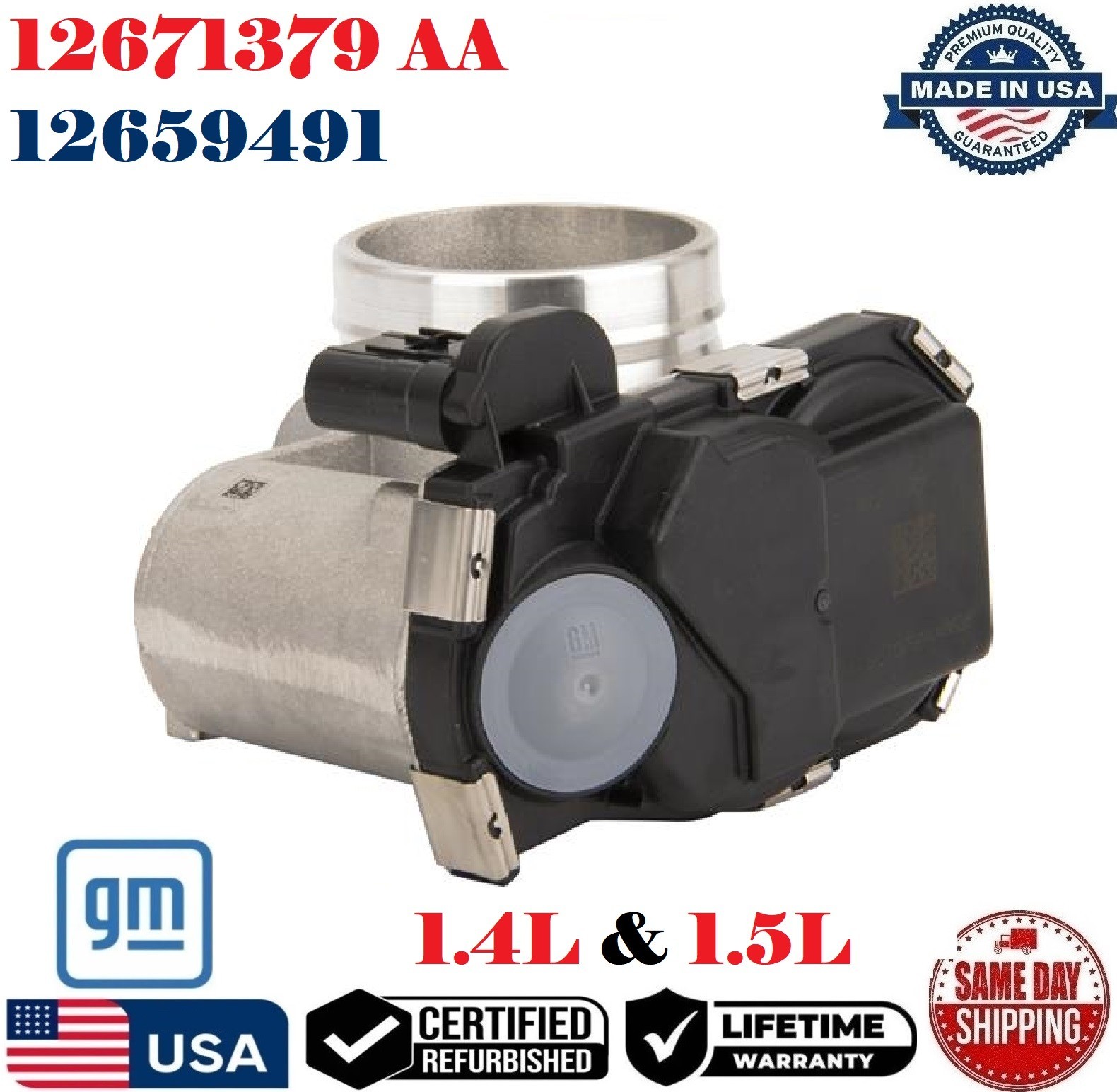 \*\*\*REMANUFACTURED GENUINE GM\\*\\*\\* THROTTLE BODY NOT aftermarket\*\*\* **_Part Number #_** **12671379AA , 12671379 , 12659491** **Please use our compatibility chart or verify with your part number to see if these parts are right for your car!!!** **_Fits On_** **GM 1.4L & 1.5L** - **2016-2019 , 2021-2022 BUICK Encore 1.4L** - **2017-2019 CHEVROLET Cruze****1.4L** - **2018-2022 CHEVROLET Equinox 1.5L** - **2016-2024 CHEVROLET Malibu 1.5L** - **2019\. 2021-2022 CHEVROLET Trax****1.4L** - **2018-2022 GMC Terrain****1.5L** PLEASE NOTE: YOU WILL RECEIVE THIS PRODUCT EXACTLY AS SHOWN IN THE PICTURE ! - **INTERNALLY AND EXTERNALLY CLEANED WITH VARIOUS ULTRASONIC TREATMENTS USING THE LATEST EQUIPMENT IN THE INDUSTRY.** - **ALL PARTS ARE CHECKED FOR MAJOR DAMAGES & CRACKS, TESTED BEFORE SHIPPING.** - **ALL REMANUFACTURED ITEMS WERE PREVIOUSLY USED MAY HAVE LIGHT SCRATCHES, FADED COLORS AND SIGNS OF USAGE. HOWEVER, THEY STILL FUNCTION AS IF THEY WERE NEW.** **Shipping:** **_Once we have received cleared payment, your item will be shipped within 24 hours Monday-Saturday \[US Holidays excluded\] via USPS. Express shipping options are available, please contact us to inquire._** **Return:** **_Returns are accepted within 30 days of purchase. Please note that all products must include all accessories, adapter, seals, paper work, etc. There will be a 20% restocking fee for opening item(s) based on conditions. We suggest you use a traceable method of shipping as we cannot be held responsible for any lost items._** **DISCLAIMER** **+We do not guarantee labor. We do not assume liability for any claims for more than the purchase price of the item+**