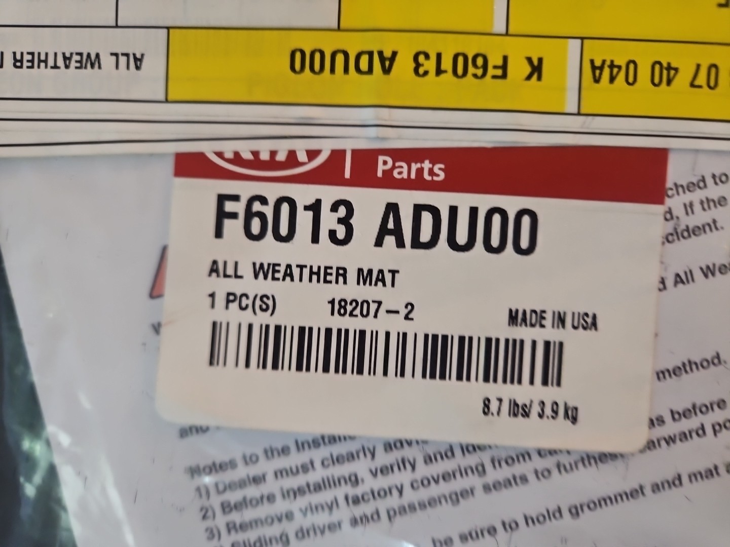 Genuine Kia Floor Mats All-Weather F6013 ADU00 New Unopened Free Shipping inv aj47