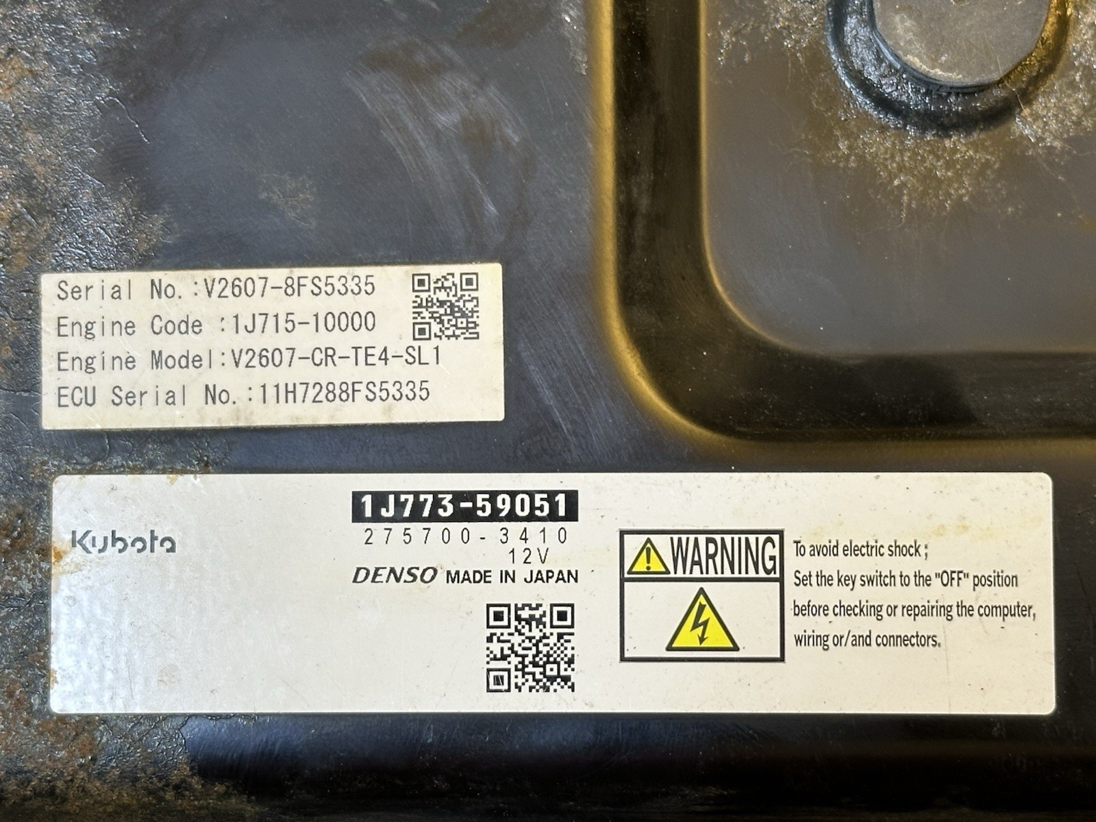 Genuine Kubota ECU 1J773-59051 for V2607 Engine - Working Pull from SSV-65