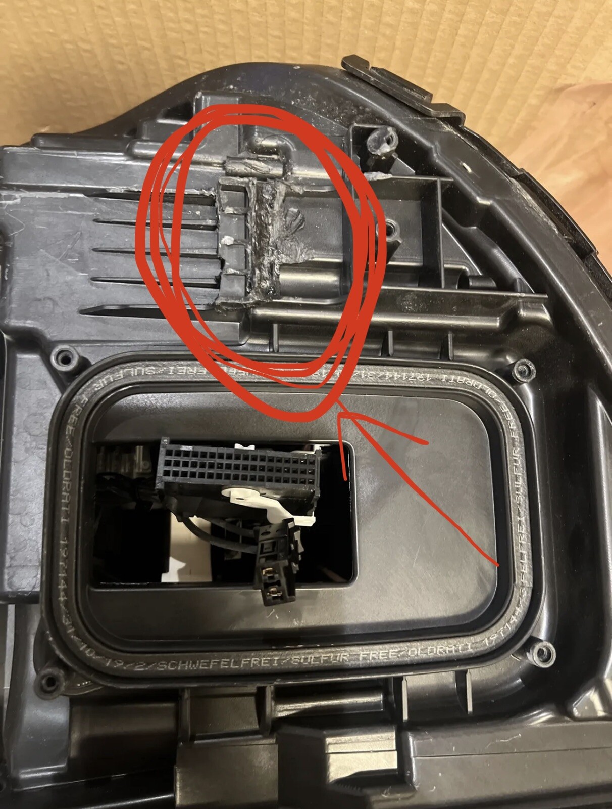 Used Genuine Mercedes-Benz Headlamp Assembly - Right 213-906-70-01. One of the 3 mounts is missing. On the bottom of the assembly. There is a bracket repair kit available from MB. See pictures. Thanks for watching.😊