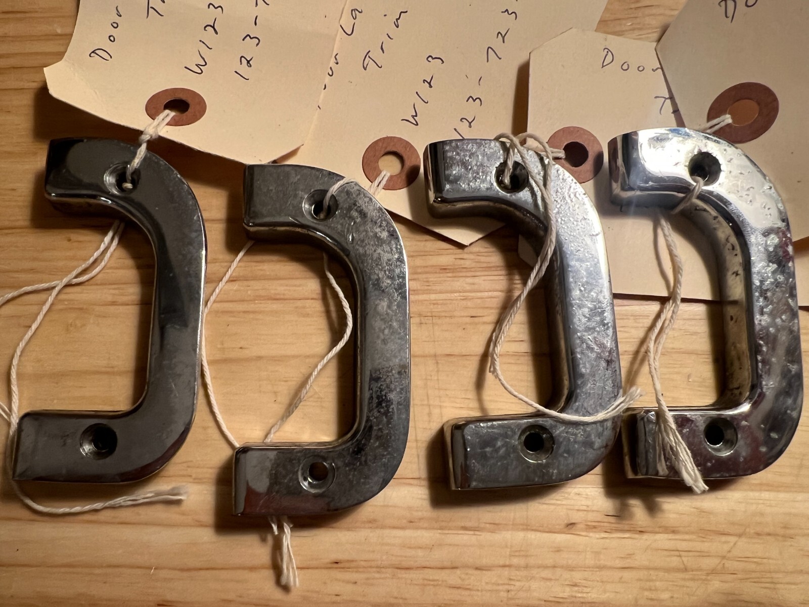 The trim is pre-owned. This handle fits the left driver inside door. The part number is 123-723-01-24.