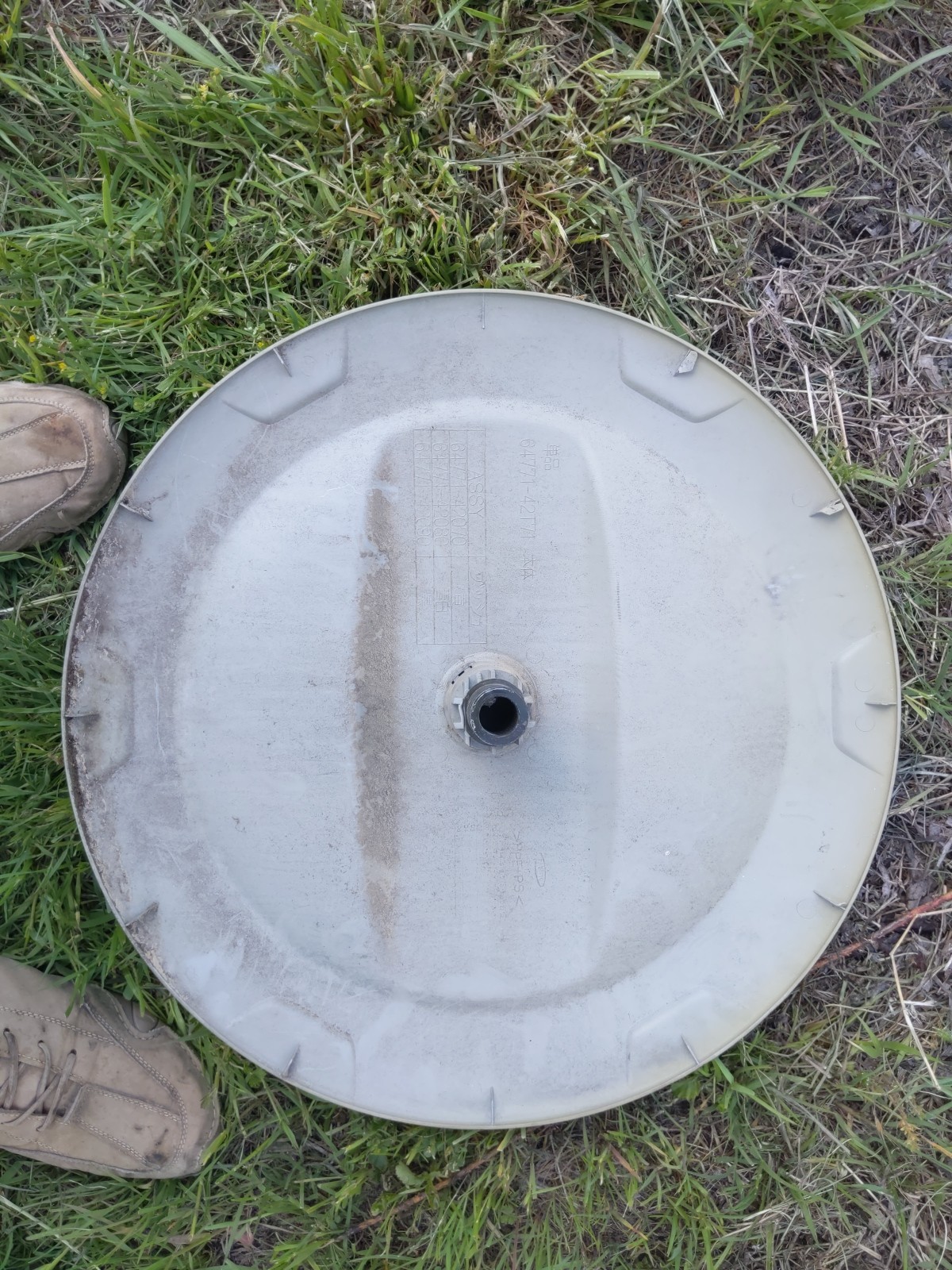 Genuine OEM Toyota RAV4 Spare Wheel Tire Cover White Hard Shell ONLY, 2001-2005 This is the piece that covers the middle of the spare tire. It is not the large shell that encloses the tire.