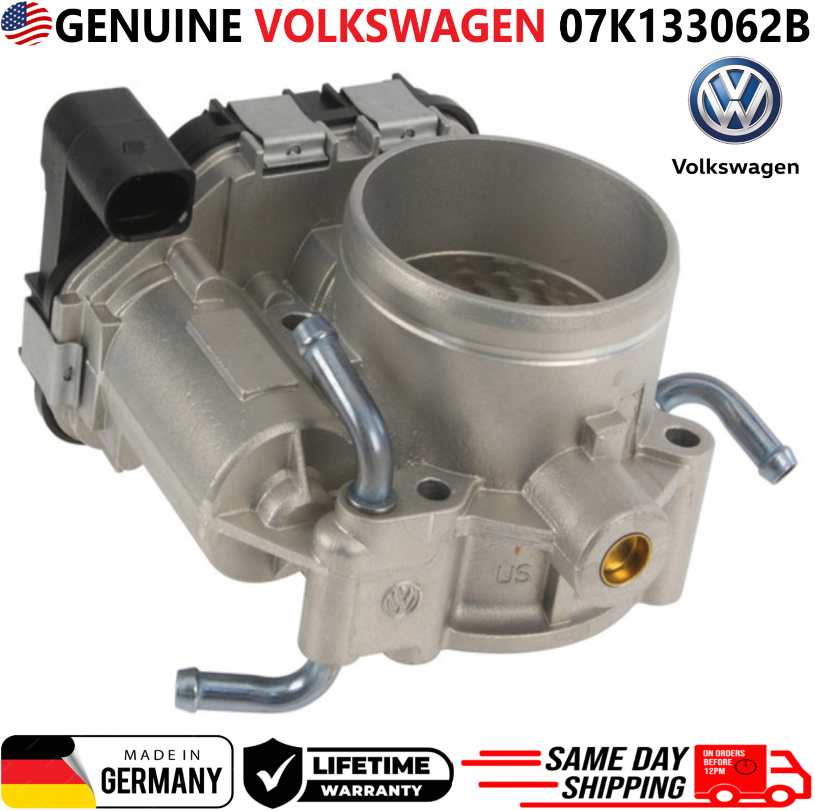 REMANUFACTURED GENUINE VOLKSWAGENThrottle Body For 2005 2006 2007 Volkswagen Jetta Beetle Rabbit 2.5L I5 \*\*\*These Parts are NOT aftermarket\*\*\* \*\*\*FREE SAME DAY SHIPPING & LIFETIME WARRANTY\*\*\* \*\*\*MADE IN GERMANY\*\*\* **Manufacturer Part Number: 07K133062B** **Please use our compatibility chart or verify with your part number to see if these parts are right for your car!!!** Compatible Vehicles, Throttle Body For: **\> 2005, 2006, 2007 Volkswagen Beetle 2.5L I5** **\> 2005, 2006, 2007 Volkswagen Jetta 2.5L I5** **\> 2006, 2007 Volkswagen Rabbit Mk5 2.5L I5** PLEASE NOTE: YOU WILL RECEIVE THIS PRODUCT EXACTLY AS SHOWN IN THE PICTURE!!! - **INTERNALLY AND EXTERNALLY CLEANED WITH VARIOUS ULTRASONIC TREATMENTS USING THE LATEST EQUIPMENT IN THE INDUSTRY.** - **ALL PARTS ARE CHECKED FOR MAJOR DAMAGES & CRACKS, ALL PARTS ARE TESTED BEFORE SHIPPING.** - **ALL REMANUFACTURED PARTS WERE PREVIOUSLY USED MAY HAVE LIGHT SCRATCHES, FADED COLORS AND SIGNS OF USAGE. HOWEVER, THEY STILL FUNCTION AS IF THEY WERE NEW.** Highly Recommended: - Before installation, you must lubricate all seals and O-rings!!! - We highly recommend any auto part to be installed by a professional mechanic. - We are not responsible for any damages caused by improper installation. Shipping: Handling time - 1 business day International, Priority, and Express shipping is also available. Warranty: We provide a LIFETIME WARRANTY for all our products (For Warranty claim please contact us) Returns and refunds: We accept returns within 60 days after receiving the package. All returned items must be unused and in the original packaging.