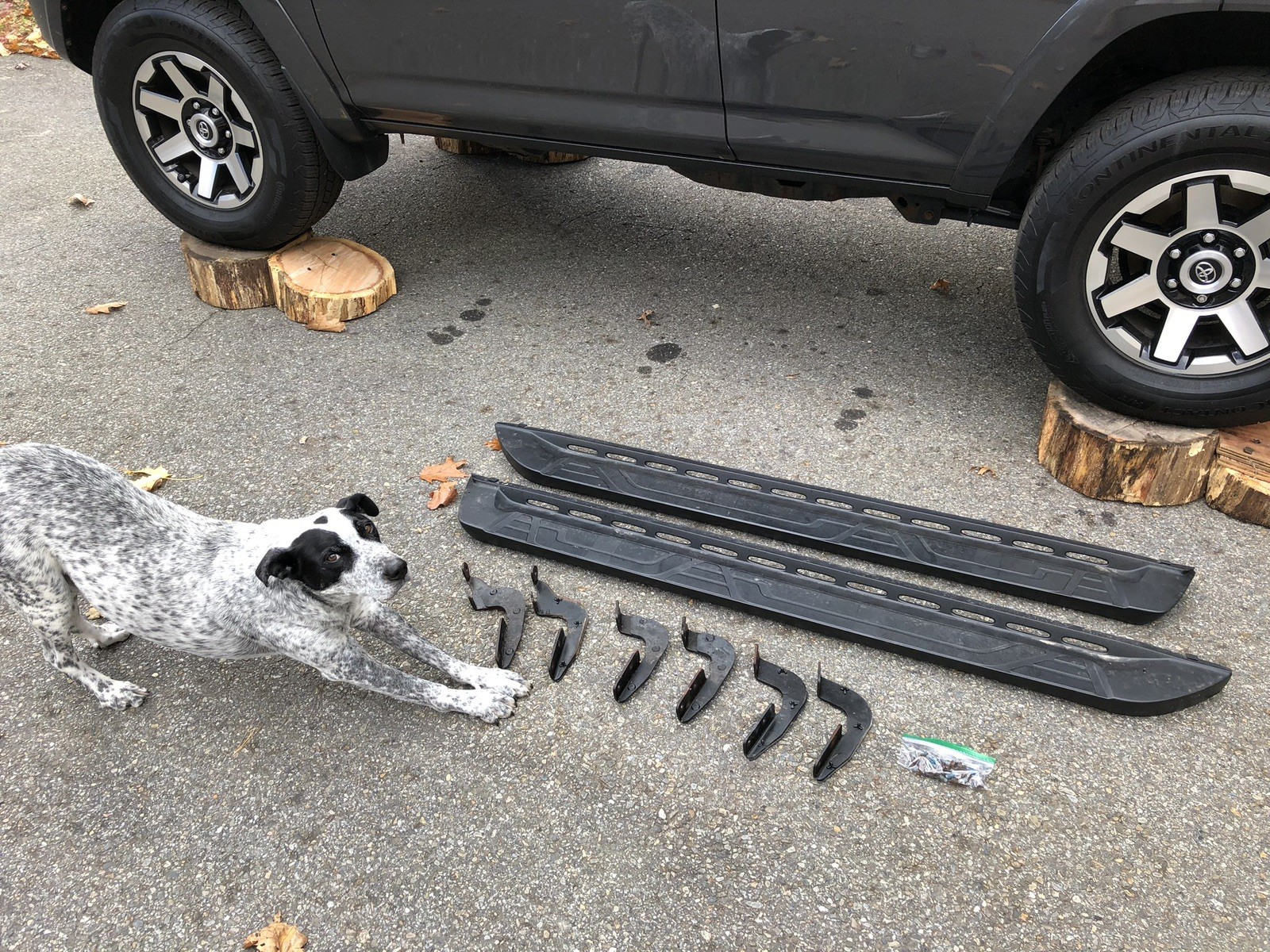 These came on my recently purchased 2019 4Runner TRD Off Road Premium. The boards and brackets are in good condition, but the mounting bolts and nuts had some rust. I'll include all the hardware, but if i were you, i would just purchase replacement nuts and bolts. FYI, one bolt did break when uninstalling from my vehicle, but a handy person should be able to unseize and remove the broken bolt. Perfect dog not included :)