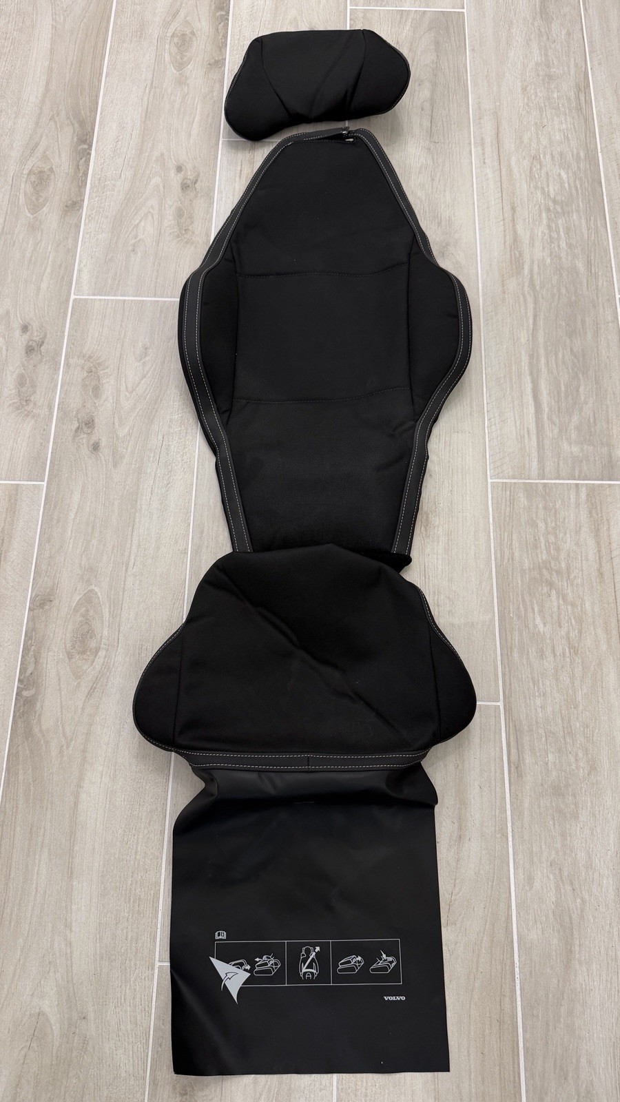 Padded upholstery for vehicles equipped with integrated booster cushion. The upholstery has side support that gives the child a comfortable and safe vehicle journey, while at the same time the vehicle's original upholstery is kept clean. It is made of strong high quality fabric and consists of three parts that combine into one complete unit. The side supports can be easily removed prior to washing by means of a Zip. Cushion upholstery The upholstery is easily pulled over the raised booster cushion and is removed when you need to fold it down. The bottom edge of the upholstery has a dirt cover of vinyl plastic that protects the rear seat's original upholstery. Backrest upholstery Built-in side support to improve seating comfort and keep the child in place. The upholstery is installed around the standard head restraints and attached at the lower rear section of the backrest. Head restraint upholstery A head support that is easily fitted over the standard head restraints in the rear seat and attached with Velcro fasteners. Integrated foam pads at the sides provide comfortable support and keep the child's head in place while resting. ### Facts and advantages - Padded upholstery with comfortable side supports. - Durable, high-quality textile. - Integrated dirt cover with vinyl plastic at the lower edge. - Washable. ### Technical data Material: Textile and vinyl Color: Charcoal solid Washable: Hand wash