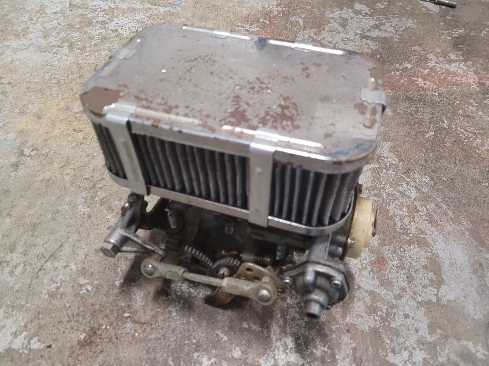 Complete used genuine Weber 38 DGAS Carburetor. Removed from Jeep CJ 4.2L for TBI Conversion. This listing includes the air cleaner and filter, clips, 4.2L aluminum adapter plates, and all linkage as pictured. This was removed from a running 4.2L although and has been sitting on the shelf for years. Recommend going through it and rebuild, or mount and tune as required.