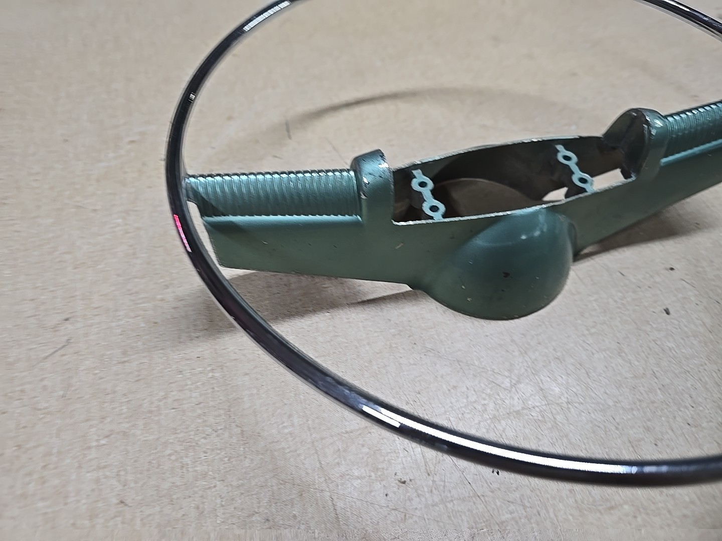 The 1953-1954 Oldsmobile Steering Ring Horn Button is a vintage car part made in the United States. This silver chrome horn contact ring has a 12-inch diameter and is designed specifically for Oldsmobile vehicles from the 1950s. The product is a genuine OE/OEM part with the manufacturer part number 565204 and is compatible with various Oldsmobile models from the 1950s. Perfect for restoring or customizing a classic Oldsmobile steering wheel, this distinctive and rare component is a must-have for any collector or enthusiast of vintage car parts. Thanks for looking and be sure to check out my other listings.