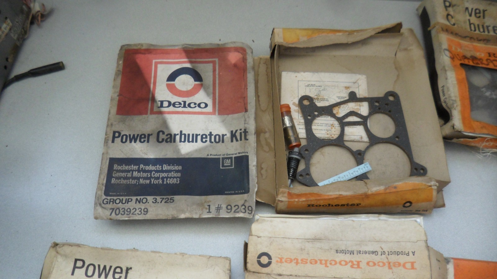 This listing is for a GM Delco Power Carburetor Rebuild Partial Kit Lot Restore Parts Hot Rod Assemblies. Comes as shown, not complete kits. Comes as a lot of everything that is pictured. Not 1 kit is complete, all are missing some parts. Great for restoration needs or for spare pieces. Comes as pictured. Please take a close look at the pictures to see the condition and to make sure this will work with your application needs. **Help us out!****We will be listing a 50 year collection of Tri-5 parts. We have roughly upwards of 20k pieces of trim and parts. Genuine GM parts. SAME DAY SHIPPING VIA STANDARD SHIPPING.
