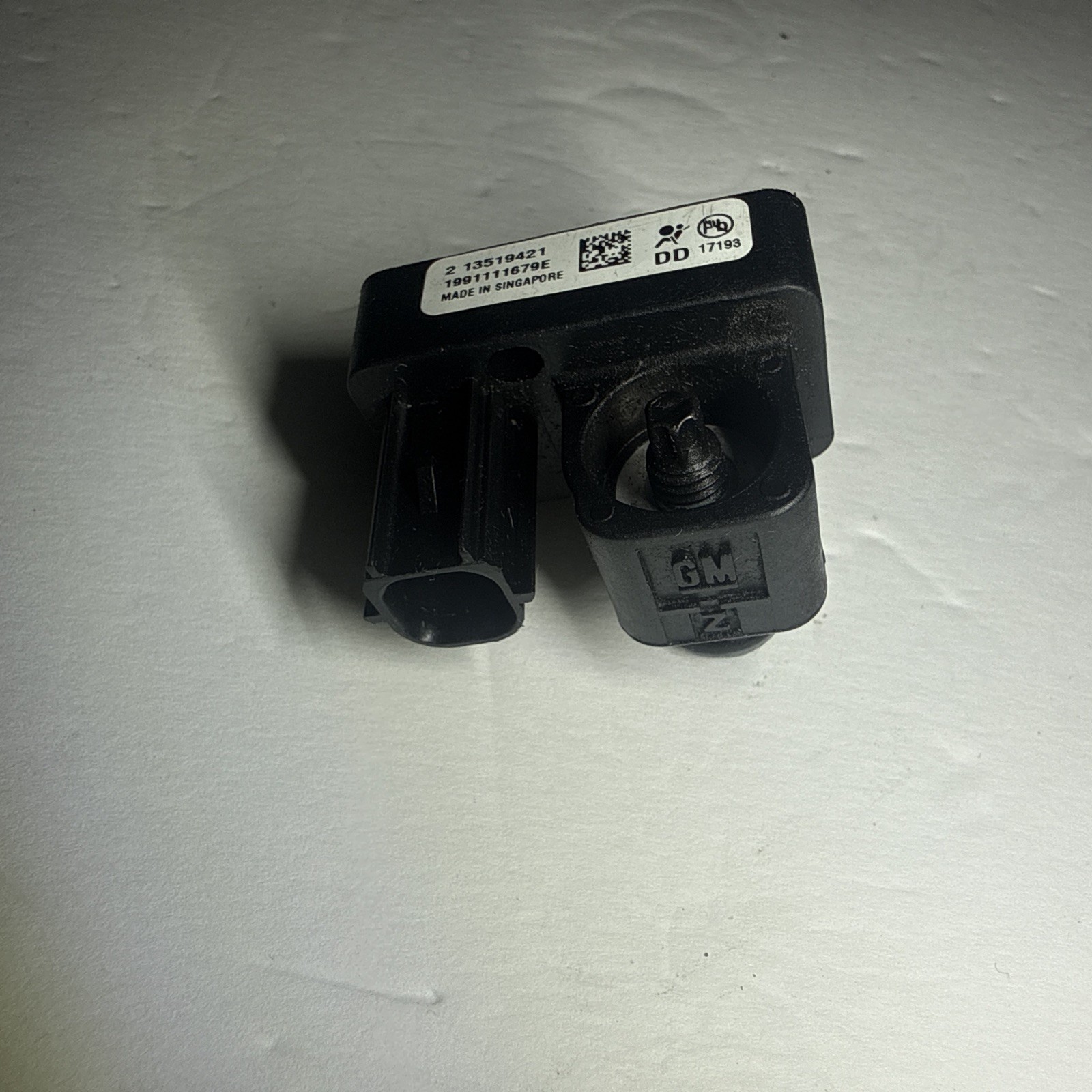 The NEW GM OEM Crash Sensor for General Motors GMC vehicles, with the part number 13519421, is a black plastic sensor designed for the front placement on the vehicle. This sensor is a performance part that meets the standards for compatibility and functionality, making it a reliable choice for your vehicle's safety system, providing a seamless fit and operation for your GMC vehicle.