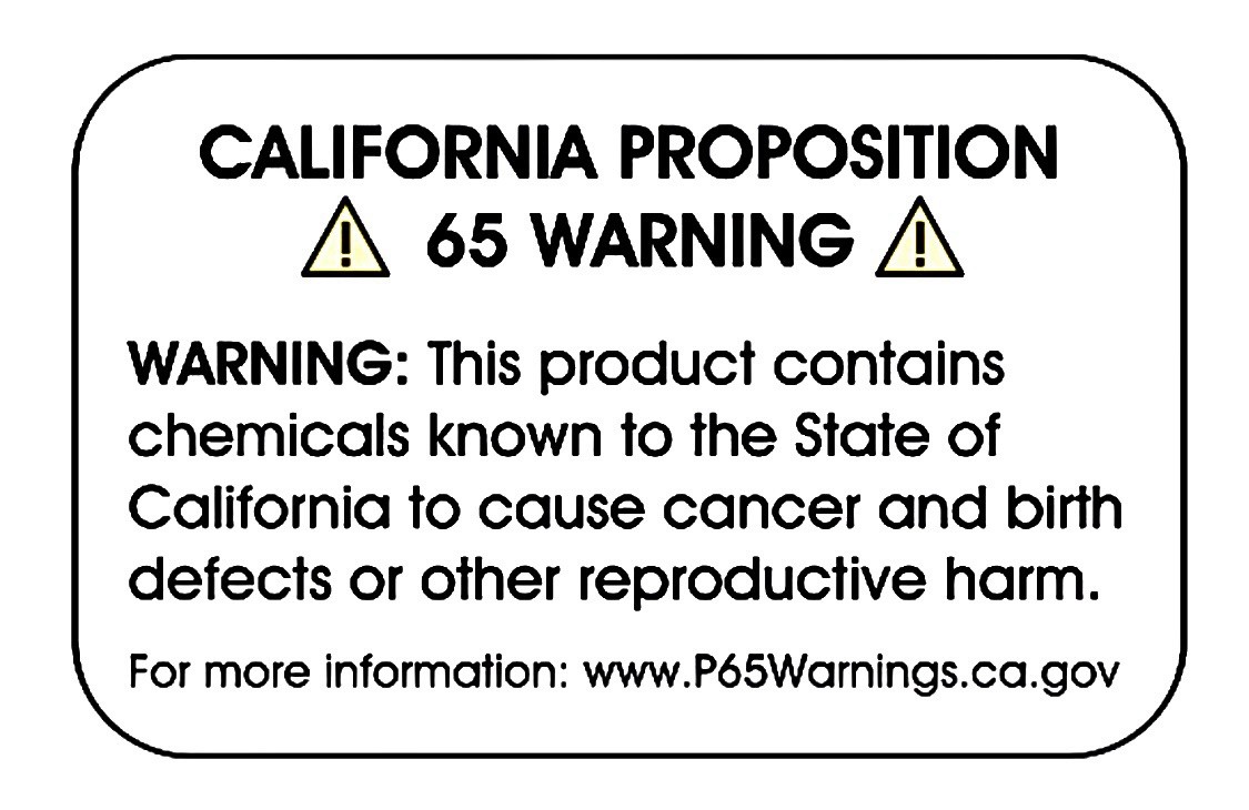 - California Prop 65 Warning: Warning: Cancer & Reproductive Harm!