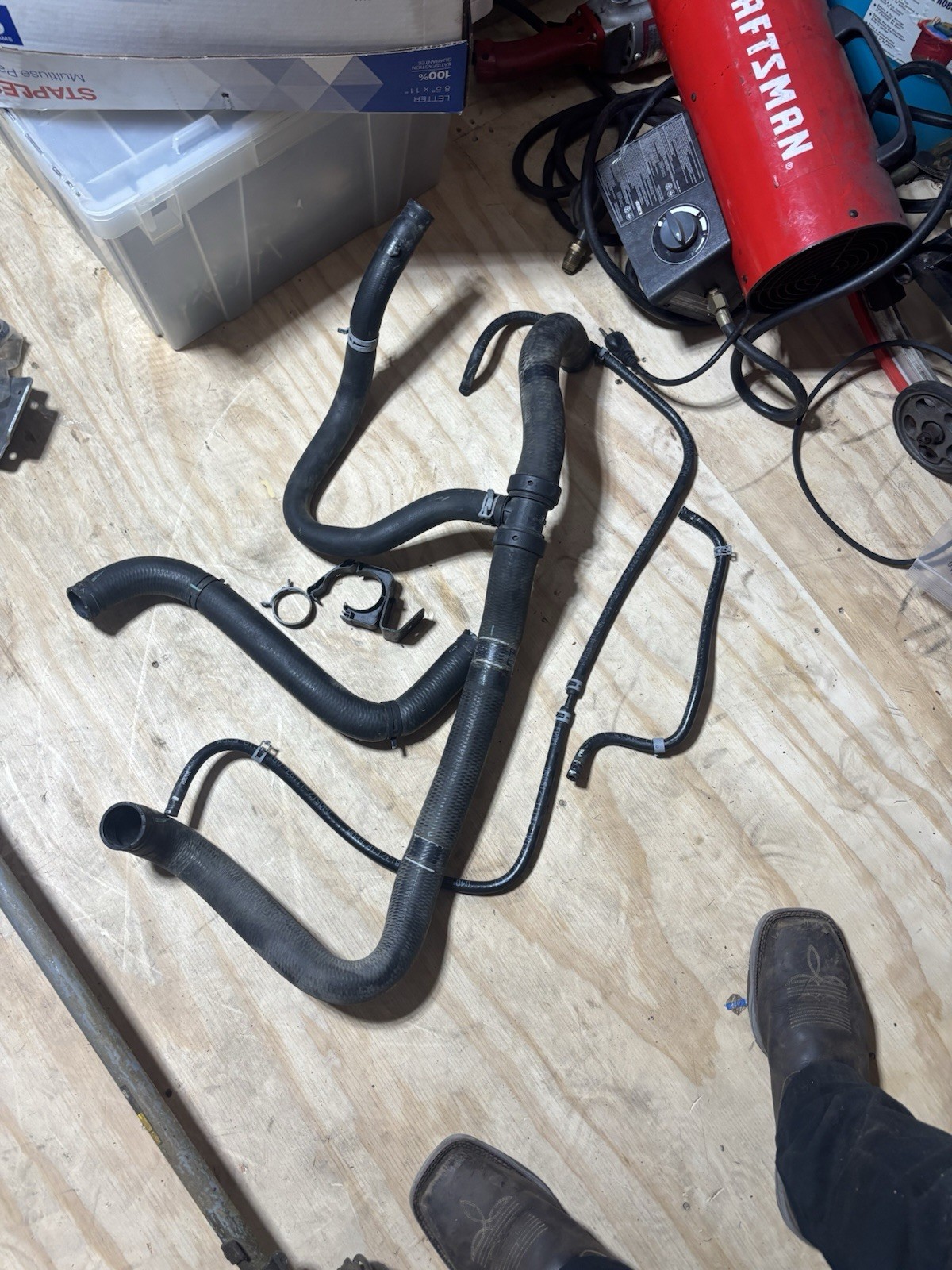 I am selling a complete set of used OEM coolant hoses for 2014-2018 gmc Sierra/ Chevy Silverado 1500’s with the 5.3 in it. All of these hoses are in good condition, there are no tears or rips In any of them. I included all of the hose clamps on the hoses as well. Any questions give me a shout.