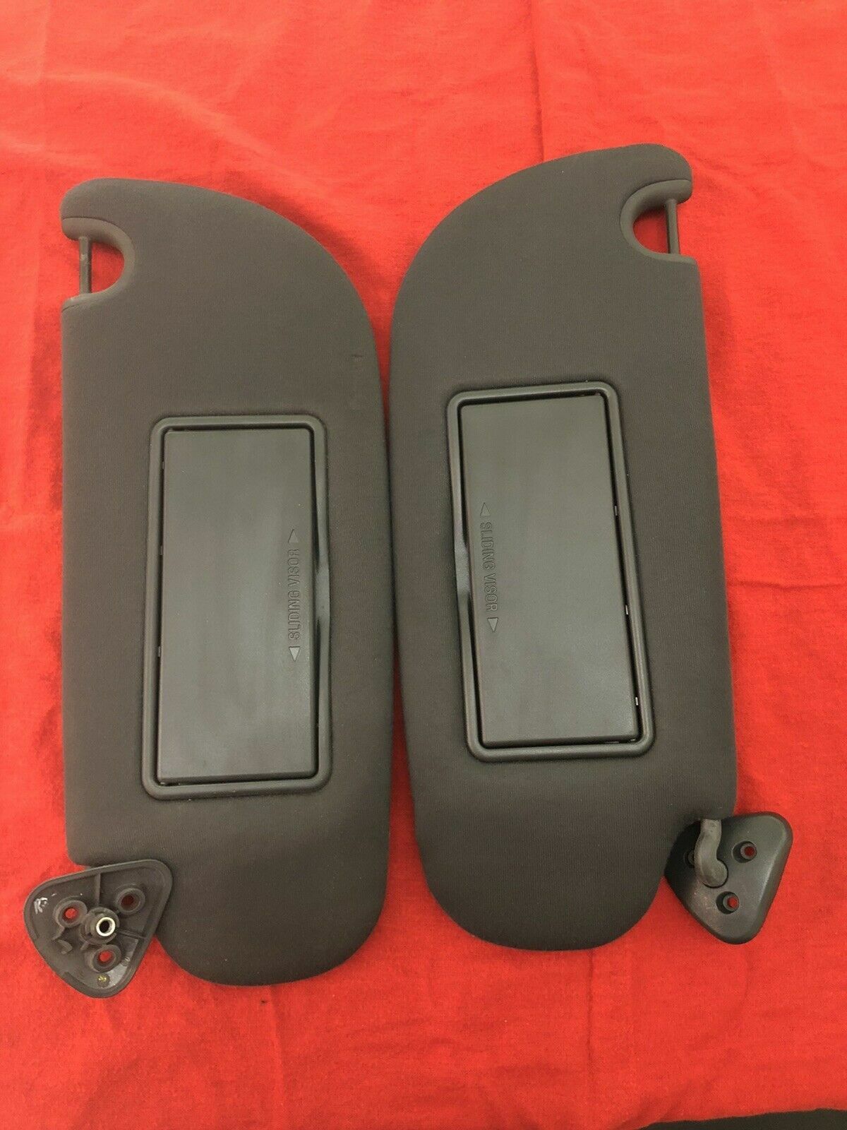 Used Set of (2) Black Sun Visors Windshield Sun Shade , Fit for 2009-2011 Ford crown Victoria ( include police interceptor P71) Sun Visor comes with Clip (No screws are included with this listing) fit for : \\* 2009-2011 Ford Crown Victoria include police interceptor p71 \\* 2009-2011 Mercury Grand Marquis **GOOD CONDITION** **The item may shows some spots of wear and light scuffs/scratches from previous use ......No breaks or cracks...Overall, a Fair used pieces!** Notice : Pictures may be for reference of listing of multiple items and may not be the exact item purchased unless otherwise noted. item expect normal hole , wear, scuffs, scratches, dings, nicks, rust , etc.