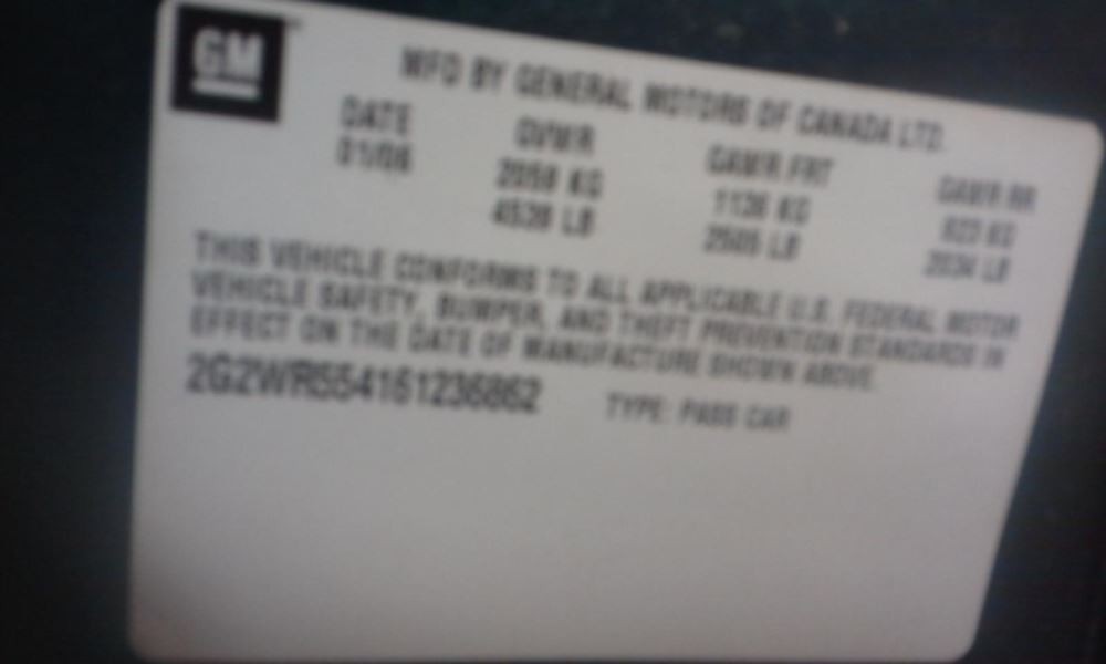 - VIN #: 2G2WR554161236862