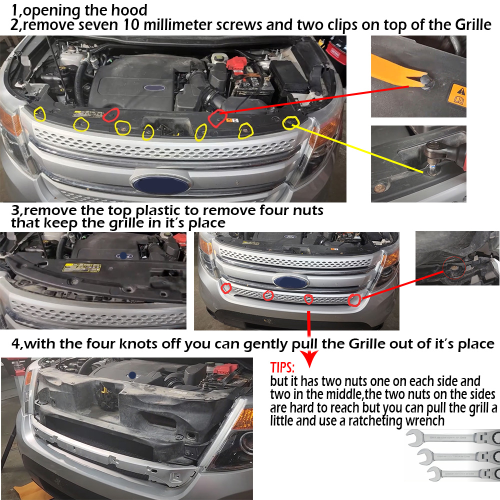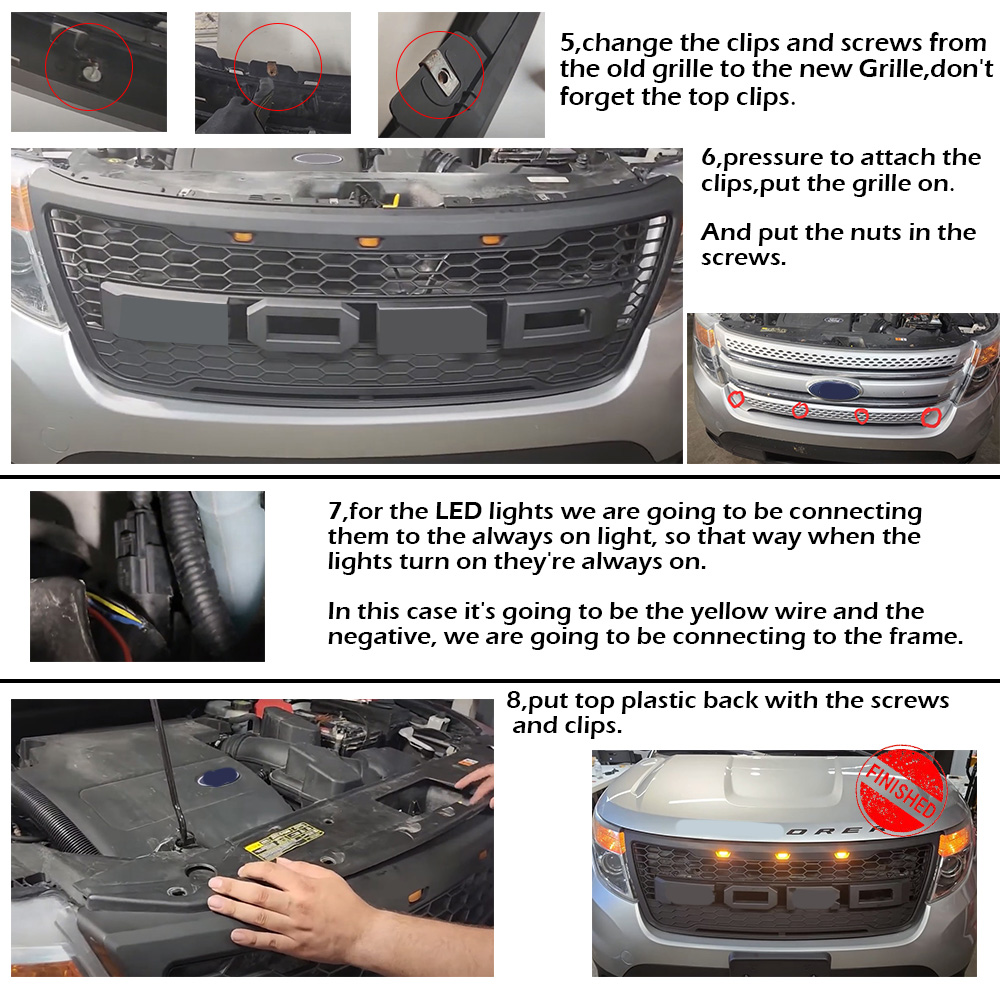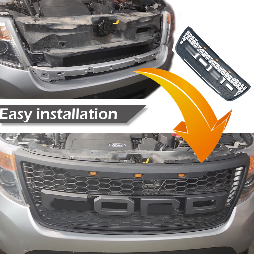 SAFE & SECURE SHOPPING  100% SATISFACTION GUARANTEED  FAST SHIPPING **GRILL FOR 2011 2012-2015 FORD EXPLORER FRONT BUMPER MESH GRILLE w/LED LETTERS**         Product Description **GRILL FOR 2011 2012-2015 FORD EXPLORER FRONT BUMPER MESH GRILLE w/LED LETTERS** FEATURE: \\* Easy to install and require no modifications. Direct Bolt-on Replacement \\* Raptor style OEM fitment, no cutting or drilling required. \\* A great upgrade for your vehicle, Provides better airflow to the radiator to help the cooling process better. \\* You could paint the grille in colour you like. Gives your vehicle a new style and appearance. \\* Provides better airflow to the radiator to help the cooling process better. SPECIFICATIONS: Material: High Quality ABS Plastic Part Type: Grille 100% Brand new Style: New Raptor Style Color: Matte Black Position: Front Bumper FITMENT: _For FORD EXPLORER 2011~2015_ _Base,Limited,Sport,XLT_ PACKAGE INCLUDE: 1x Front Grille 4x Letters (F-O-R-D) 3x Amber LED Lights 1x Wire Harness Installation Steps:  - About Us - Payment - Shipping - Returns - Contact Us About Us Welcome to FunKit ,this is a professional shop selling Auto parts, with high-quality and affordable products.You can choose the products suitable for your car, we provide you with the best price and high quality products. Thank you for your business.If you have any questions, please contact us. Please leave us with positive feedback if you are satisfied with our products and services,if not, please contact us before leave any neutral or negative feedback,we'll try our best to satisfy with you. Thank you! Payment We only accept PayPal payment. Shipping IMPORTANT NOTICE: We ship our products via FedEX or USPS. In some cases,your purchase will be shipped in two packages(e.g. Grille is in a package,letters,LED lights are in another packge),so please be patience if you recieve one of them first. -We do not offer expedited shipping. -We only ship to the Lower 48 states, and we do not ship to FPO, APO or PO Box addresses. And we are not responsible for wrong or undeliverable address. Please provide us your full address with Telephone number and make sure your shipping address is correct and deliverable. If you need to change your address,please change it in PayPal first before you pay. -Package handling only takes 1 business day at our warehouse, so please make sure entering correct payment and shipping information before checking out. -We are not responsible for any changed of address after item has been shipped. Returns Return: We offer a 30-Day Limited Warranty. If you are not satisfied with your purchase, we are more than happy to offer an exchange or refund within 30 days. !!!No returns are accepted after installation/used. \*\*\*Received Incorrect / Damaged / Missing Item: Please take some photos of everything you have received in the package, along with a picture of the invoice and shipping label and send it to our email. We will take care of everything. Please inspect the items upon receiving any damages or missing contents. Please contact us within 7 days of delivery via email. If you change your mind / don't like it / buy it by mistake. Please repack the items carefully. Items to be returned must be in resalable condition. Returned items will be tested and if found defective / incorrect / damaged / missing parts,we will deduct the refund based on the condition of the item. The product must in brand NEW conditions and in original packaging. Installations: It is imperative that buyers understand the items are vehicle-related and require installation and vehicle knowledge. Some of our parts are direct from EUROPE or ASIA which may require modification to complete the installation. Most of the items do not have installation instructions. We highly recommend professional installation if you are not familiar with the installation. Contact Us If you have any question regarding this listing, Please send us a message. Before leaving us neutral or negative feedback, please contact us first. We will do everything we can to give you a satisfying solution. We do our best to resolve any issue. Leaving negative feedbacks and low ratings doesn't get things solved. So please talk with us and we will not let you down. Business hours: Monday to Friday (exclude Holidays) 9:00 A.M. – 6:00 P.M. Pacific Standard Time \*\*\*We do not answer any emails over the weekends and holidays. All emails will be replied in the order it was received on the following business day. Copyright © 2022 Tongtool