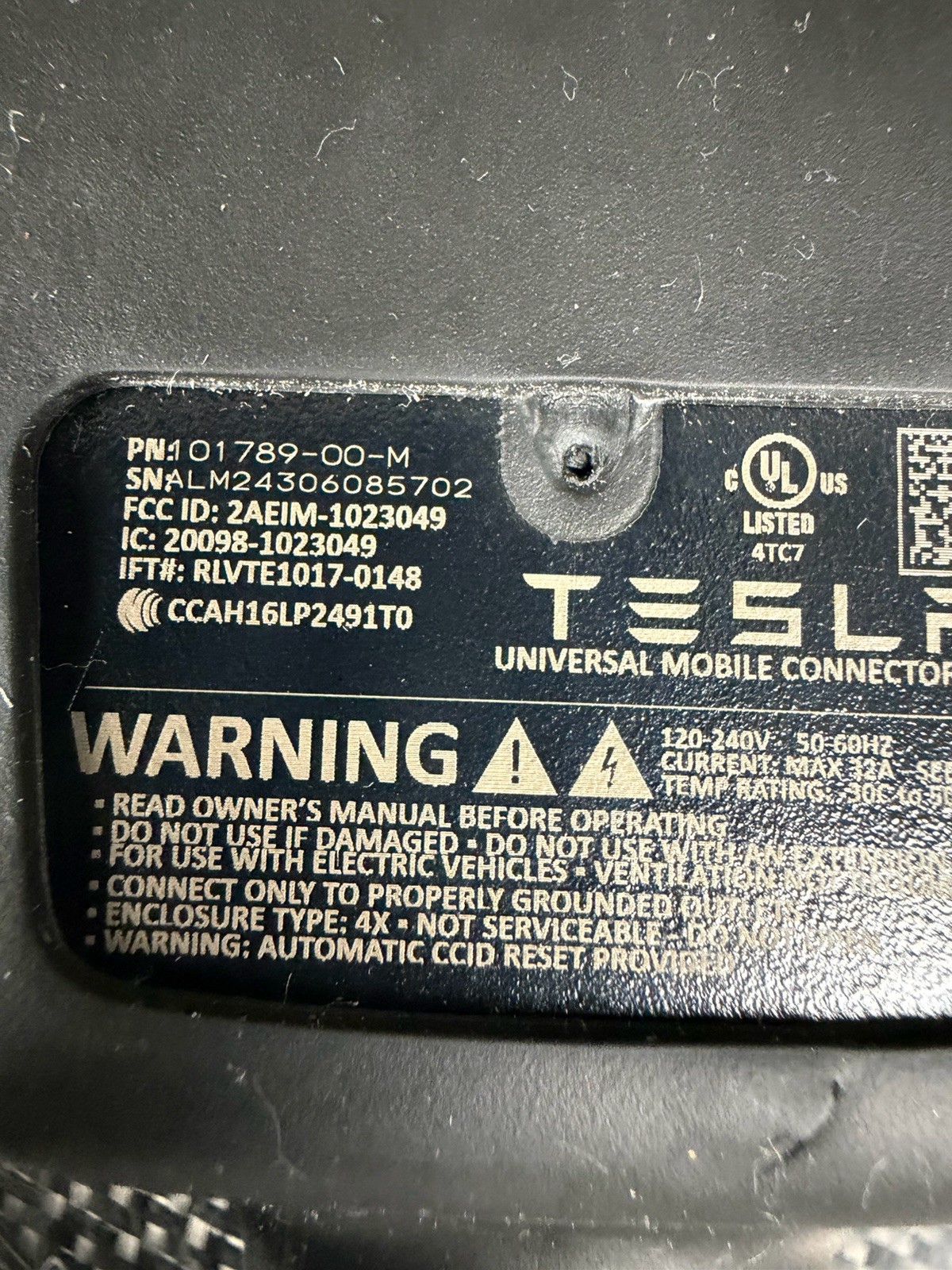 Buy with Peace of Mind--This will be Packed using a Tried & Tested method... If you want a SMOOTH & Pleasant Transaction--Consider doing business with ME... I will let my Feedback do the talking... This is for a USED OEM Tesla Charging Cable Gen 2 Home Charger PN: 1101789-00 Both type of wall plugs are included (USA) Showing some evidence of past use.. But nothing alarming- Just typical wear to the tip of the plug...Will NOT affect function.. Ive sold quite a few of these over the past month(all delivered to happy buyers) Good Overall Condition -- You will get one in EQUALLY or BETTER Condition than the one shown.. NO Flaws or Issues to point out NO Alarming Dents, Dings, Scuffs, Scrapes NO Rust, Dust or Oxidation NO Rattling or Loose pieces NO Engraving or Property Tags This will be CAREFULLY Boxed Up & Shipped Out FAST I will strive to ship out same day-- Next Business Day, Latest... It will NOT arrive Damaged.... I have years of experience packing/shipping Im the Guy you want to do business with--- I will let my Feedback do the talking :>