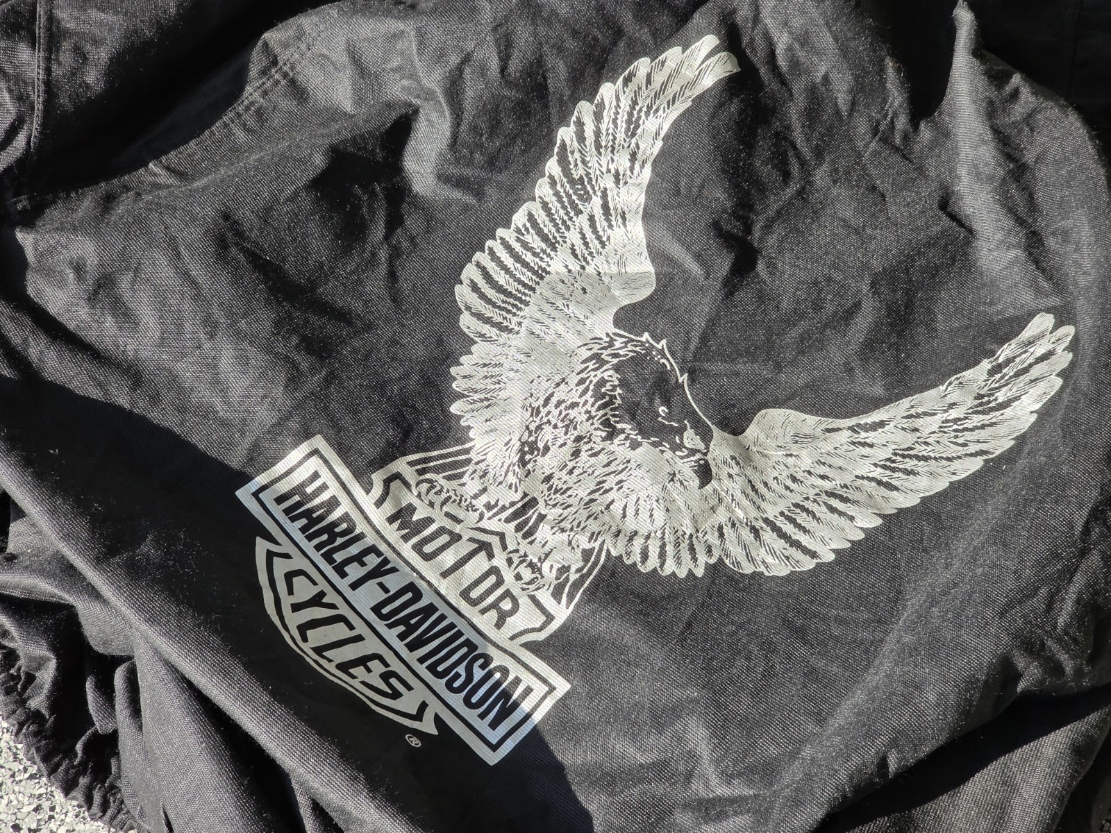 Harley Davidson Big Twin Motorcycle Bike Cover 98716-87B Eagle Logo Black OEM. **Description** . '' Used We sell parts that are used or otherwise take-offs. Some parts are like new or very gently used, and others show signs of wear and may need to be cleaned and polished. Please see pictures for more details. We try to take pictures of any defects the part may have as well as the part number when available, so you can double check and make sure that it’s the exact item you need. If you have any additional questions, feel free to email us and we will get back to you as soon as possible. We promise to resolve any issues as soon as possible. Positive feedback and 5-star seller rating are extremely important to us as we are looking to provide outstanding products and services to our customers. **Returns** We reserve the right to charge a **10% restocking fee on all returns.** Shipping and handling charges are not refundable. The buyer is responsible for the return shipping fee. **Shipping** We typically ship orders Monday through Friday (except for Holidays) within 24 business hours of receipt of cleared payment. Please make sure your shipping address is correct before sending payment. All orders are shipped with a Delivery Confirmation. You will receive and email with the tracking number as soon as your order ships. Please allow a few extra days for delivery if there is a weather problem. Shipments outside of United States may be delayed due to customs protocols. **\*\*Alaska, Hawaii, Puerto Rico and US territories Buyers** Your shipping rate is subject to increase, please ask about rate increase. **International buyers** Please be aware that the international buyers are responsible for the custom charges/taxes in their country