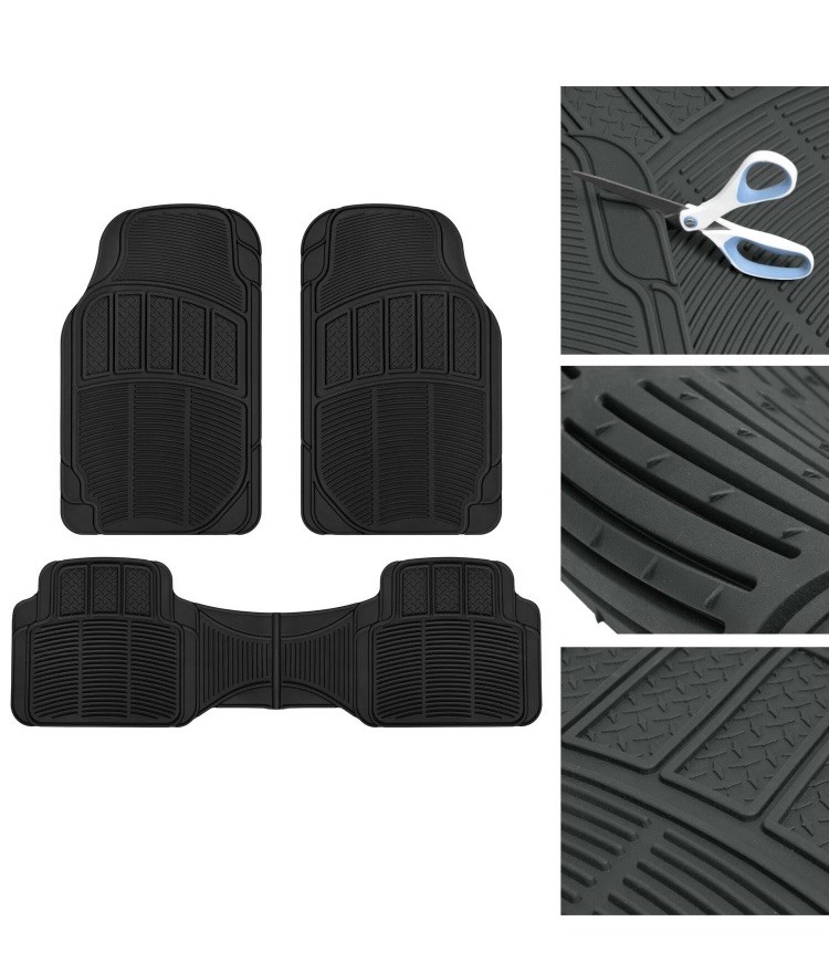 DESCRIPTION All Weather protection from gravel, dirt, mud, water Durable polymer won't crack or peel Trimmable to fit the contours of your vehicle Anti-slip backing to keep mats secure Heavy Duty Gear - CarXS ProLiners Provide All Season Weather Protection - Universal Fitment - Please Check the Dimensions before Installation – Front (28. 5" L x 17" W) / Rear (51" L x 16. 5" W) Includes Trunk/Cargo Liner - Designed for Compatibility and Made to be Trimble to Fit your Vehicle with only a Pair of Scissors. Product Dimensions: 53.7" x 43.2" inches. Ultra Durable BDK Engineered Material to Guard Against any Spills Dirt and All-Weather Conditions Full Protection. Completely Renew Your Auto Interior with Premium Rubber Mats - Stain Resistant - Fitted Look - Easy to Clean - Durable and Flexible (withstands extreme temperatures) Features Anti-Slip Backing to Prevent Slippage, Ridges & Nibs Design to Hold in Water and Loose Dirt for Easy Removal Protect your vehicle's flooring by catching spills, stains, dirt and debris that other floor mats can miss. These mats are durable and long lasting and will withstand normal wear and tear.