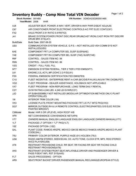 - Donor VIN: 3GNDA23D28S551485