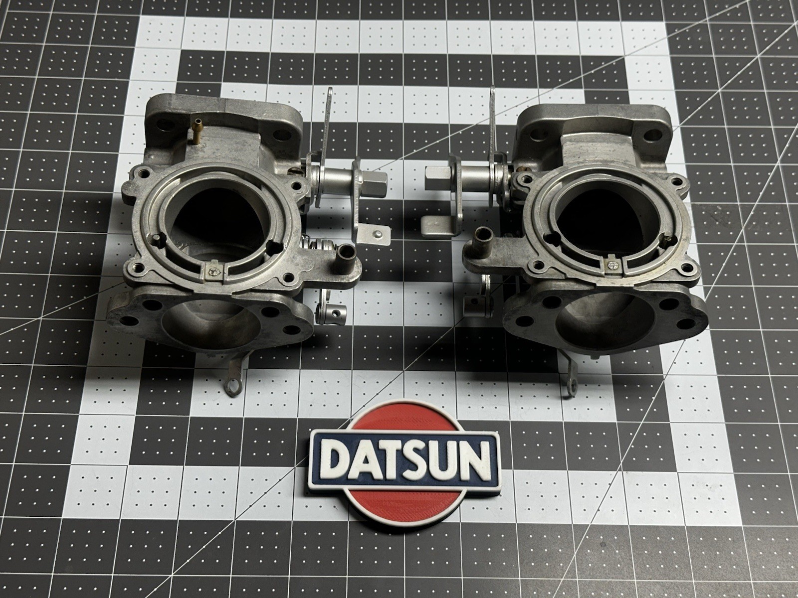 **Pair of good used carburetor bodies from early 240z** **Hitachi HJG46W main bodies choke linkage and butterfly assembly mostly complete and in good shape** **Butterfly main bearings have a bit of wear but nothing too major to prevent a rebuild, the front carburetor wiggles ever so slightly but the rear carburetor is still pretty tight** **Linkages have been painted but it was done properly with oven cure.** **Please check out all the photos in detail prior to purchase.** **Lightning fast shipping** **Quick responses if you have any questions please feel free to reach out** **Thanks for stopping by!**