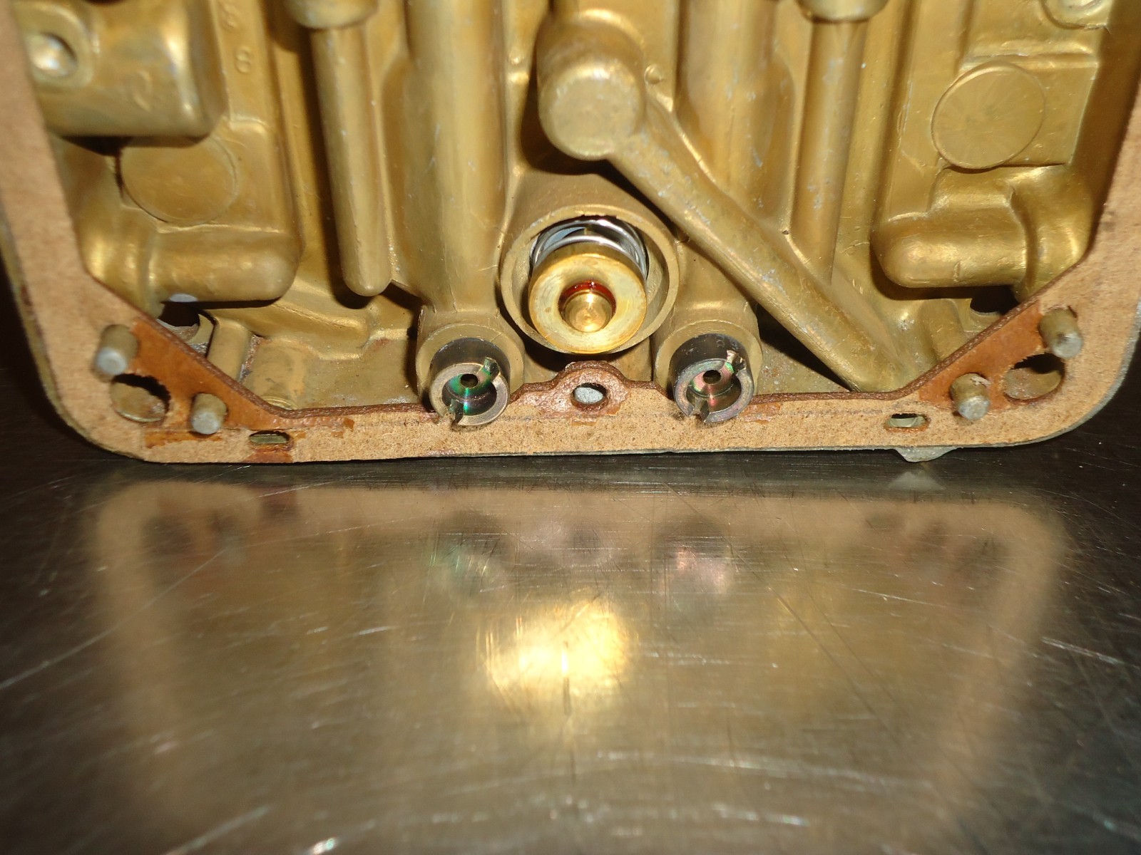 Holley carburetor metering block. Block has number 5271 3310 stamped in it. Metering block has power valve provision and idle circuits. Accelerator pump passage is open. Block was removed from a core carburetor. It is dirty and shows some patina from use and sitting. Has one gasket locating dowel broke off. See pics for condition. Can not be returned if installed, ran or has been modified. Must be returned in the same condition as shown.